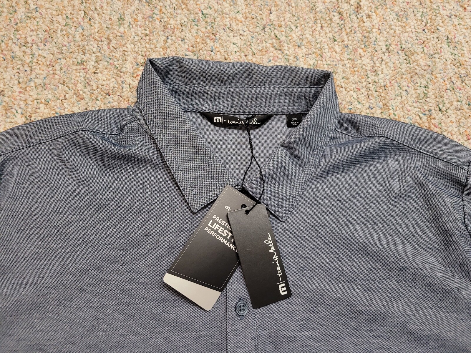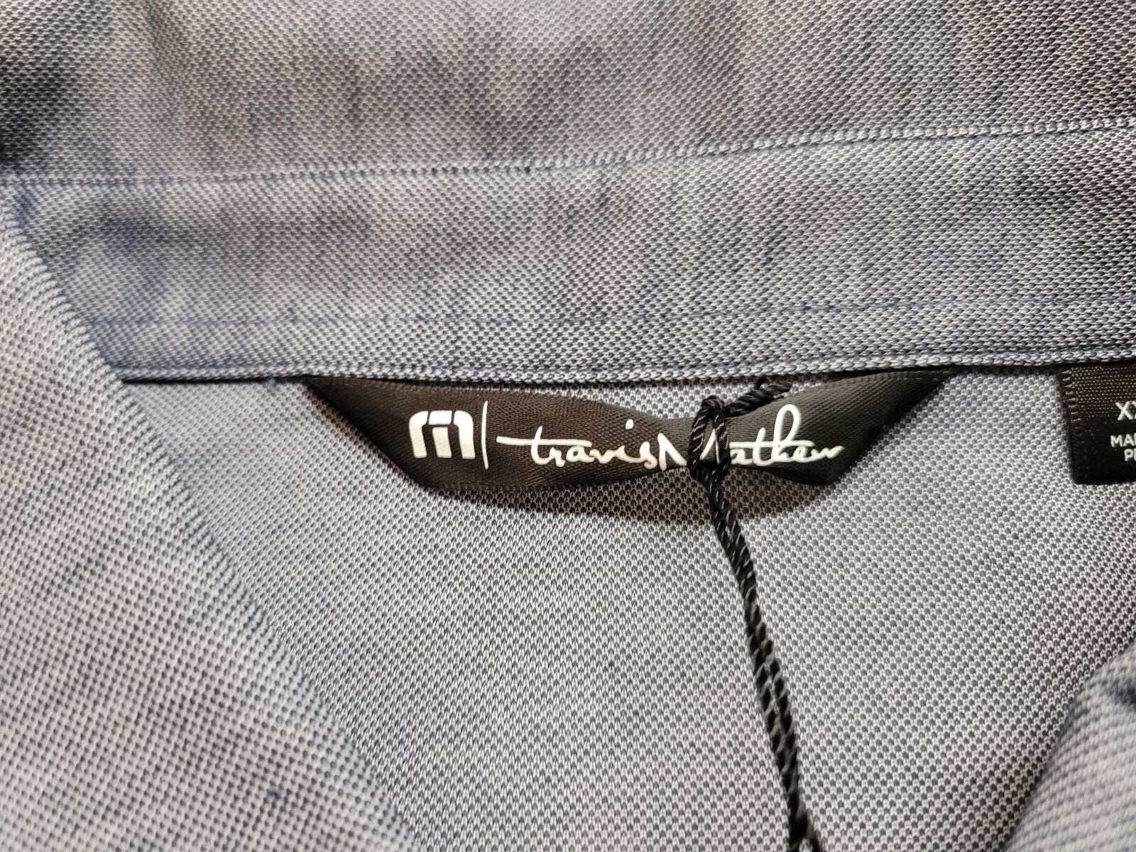 Travis Mathew Polo Shirt Mens 2XL Heather Blue Pique Performance Golf Oceanside