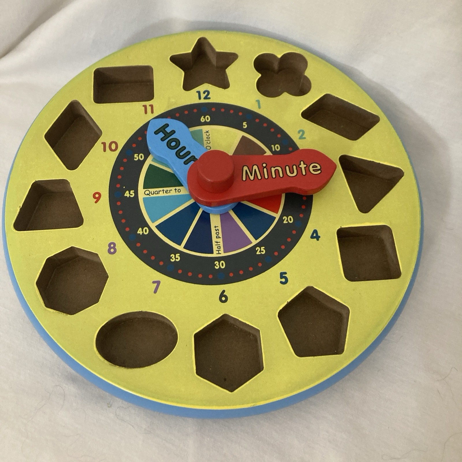 Melissa and Doug Wooden Shape Sorting Clock Shapes Blocks Teaching Time