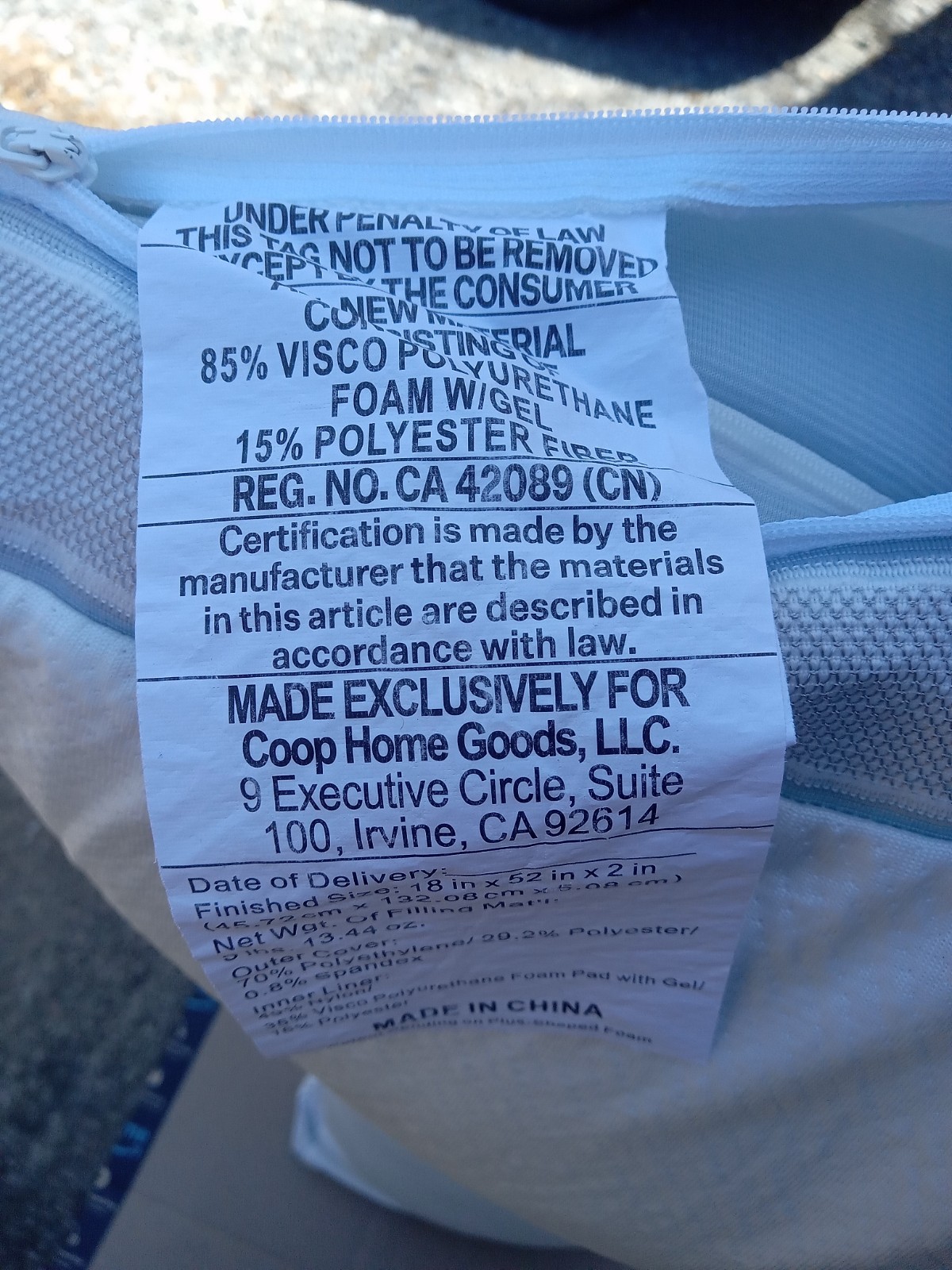 Fill Material: Visco Polyurethane Foam Pad with Gel