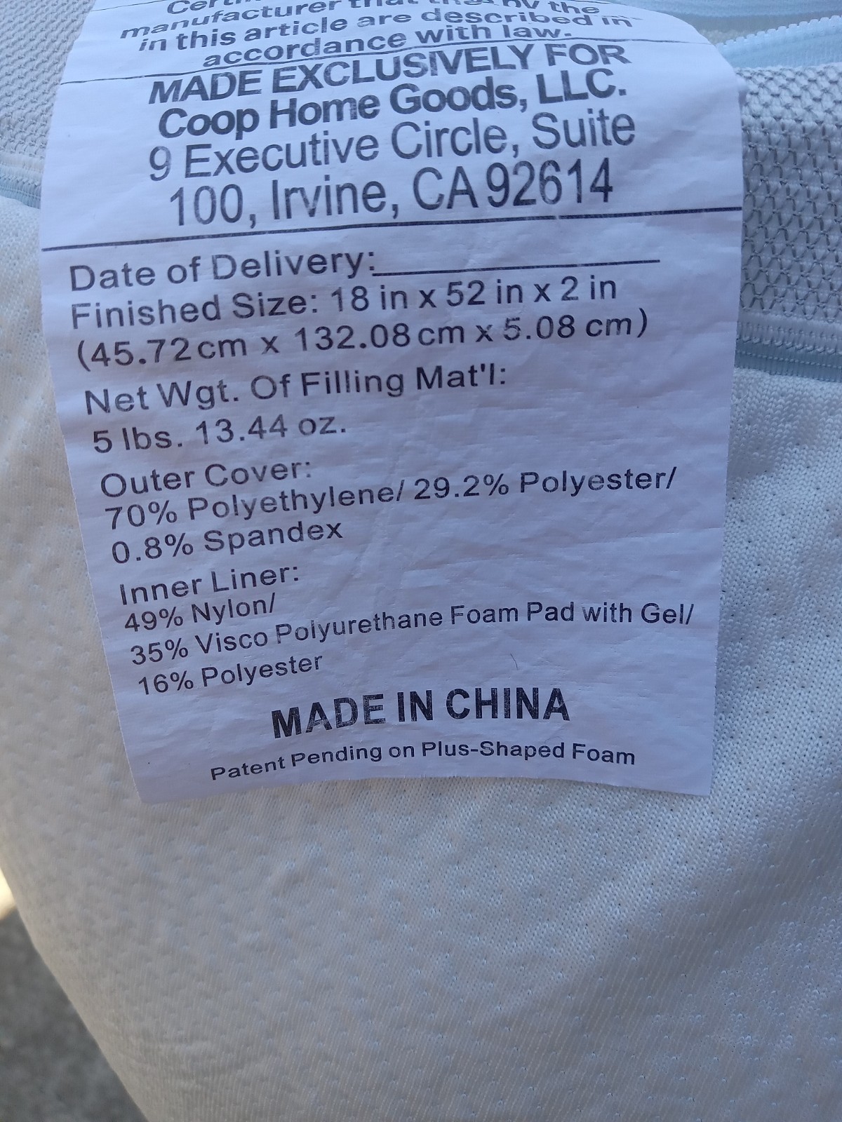 Coop Home Goods Cool Adjustable Cooling Body Pillow Memory Foam 18x52 Side