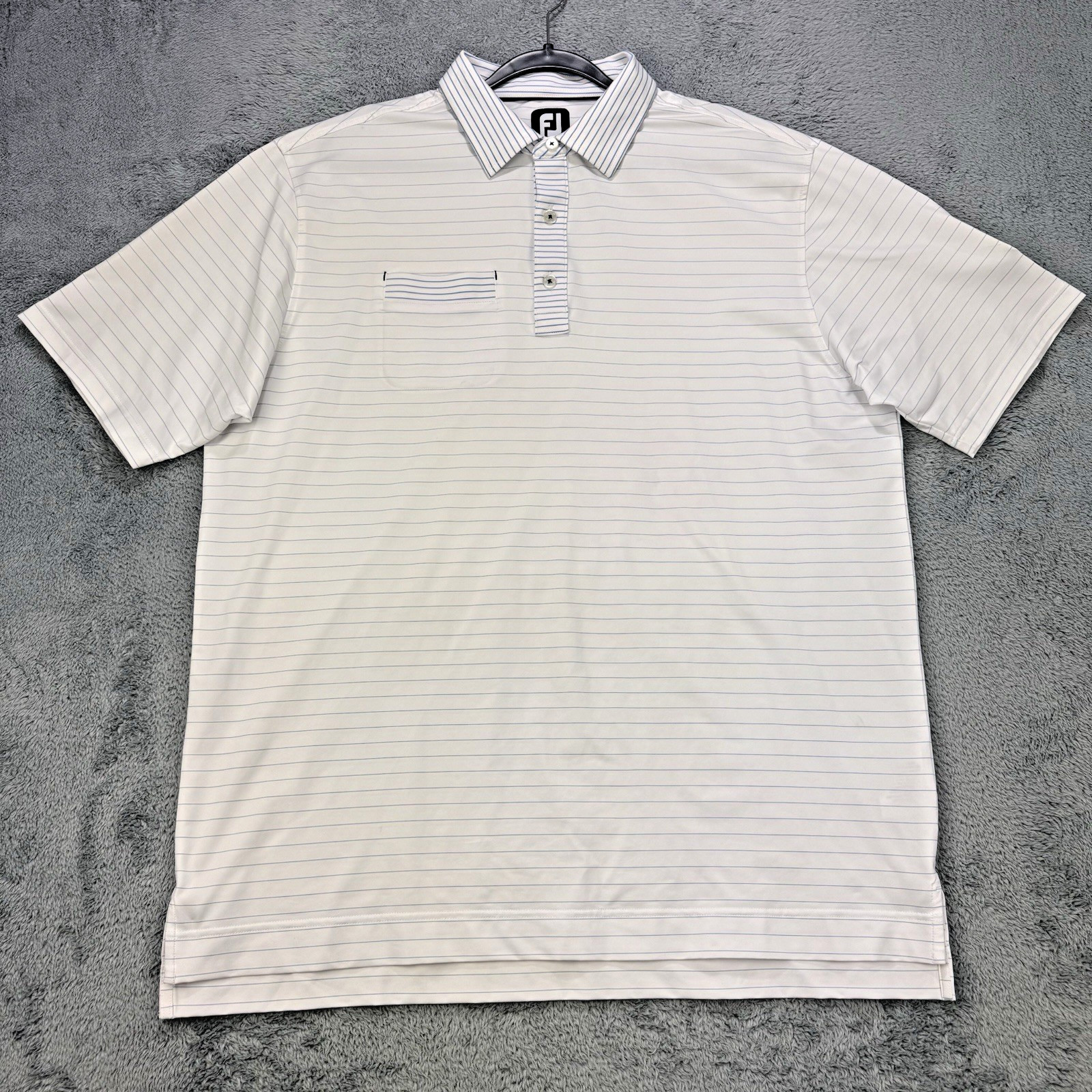 FootJoy Polo Shirt Mens XL White Pocket Stripe Golf Stretch Performance