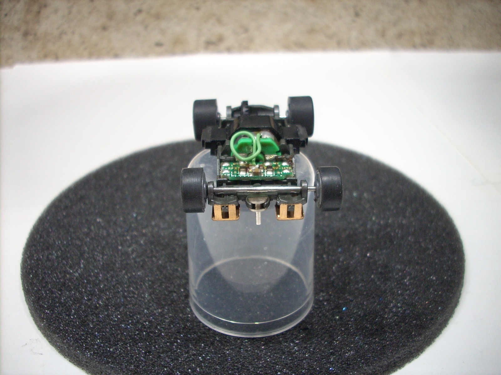 как выглядит AFX RACING H.O. SCALE MEGA G 1.5 NARROW CHASSIS GRAY WHEEL SLOT CAR CHASSIS фото