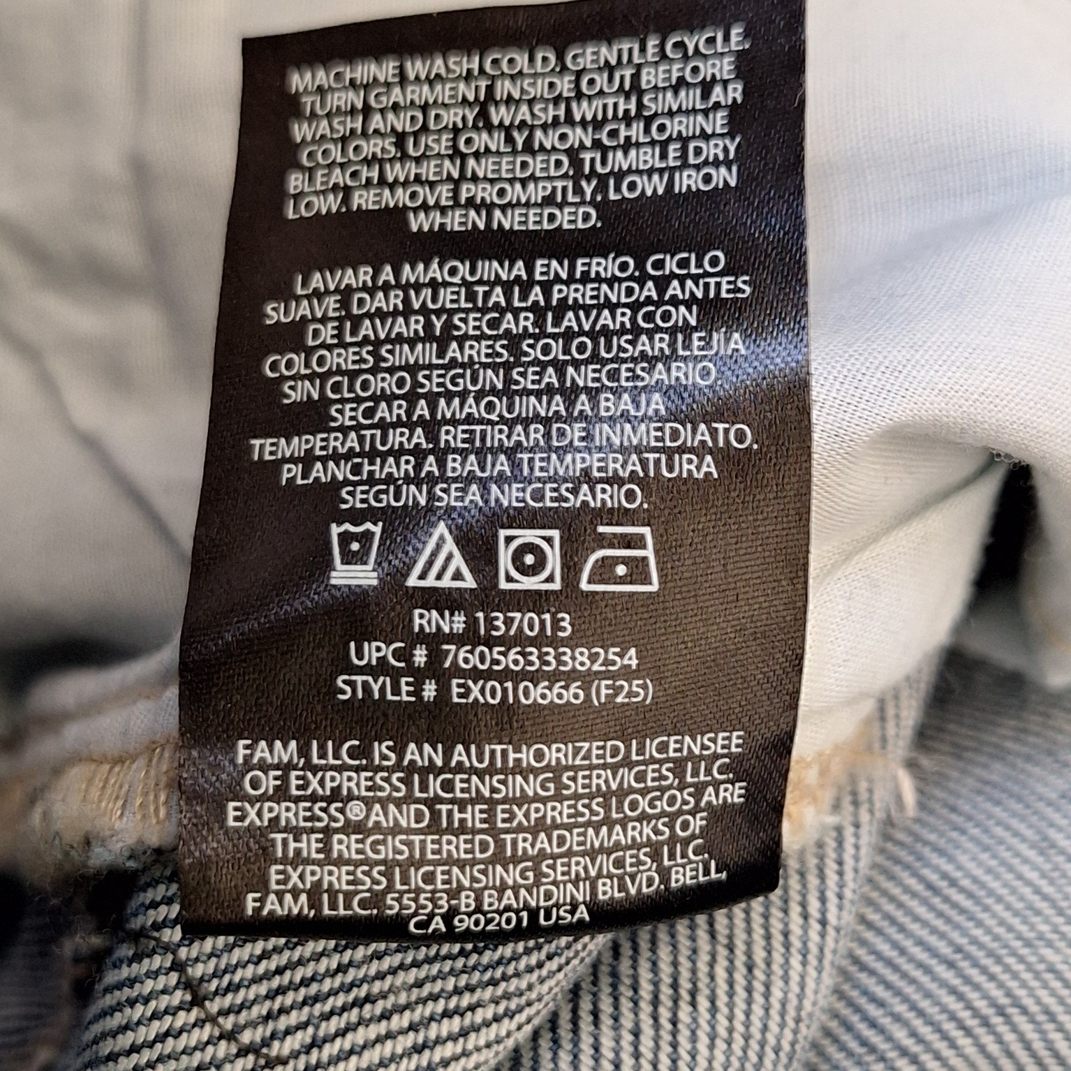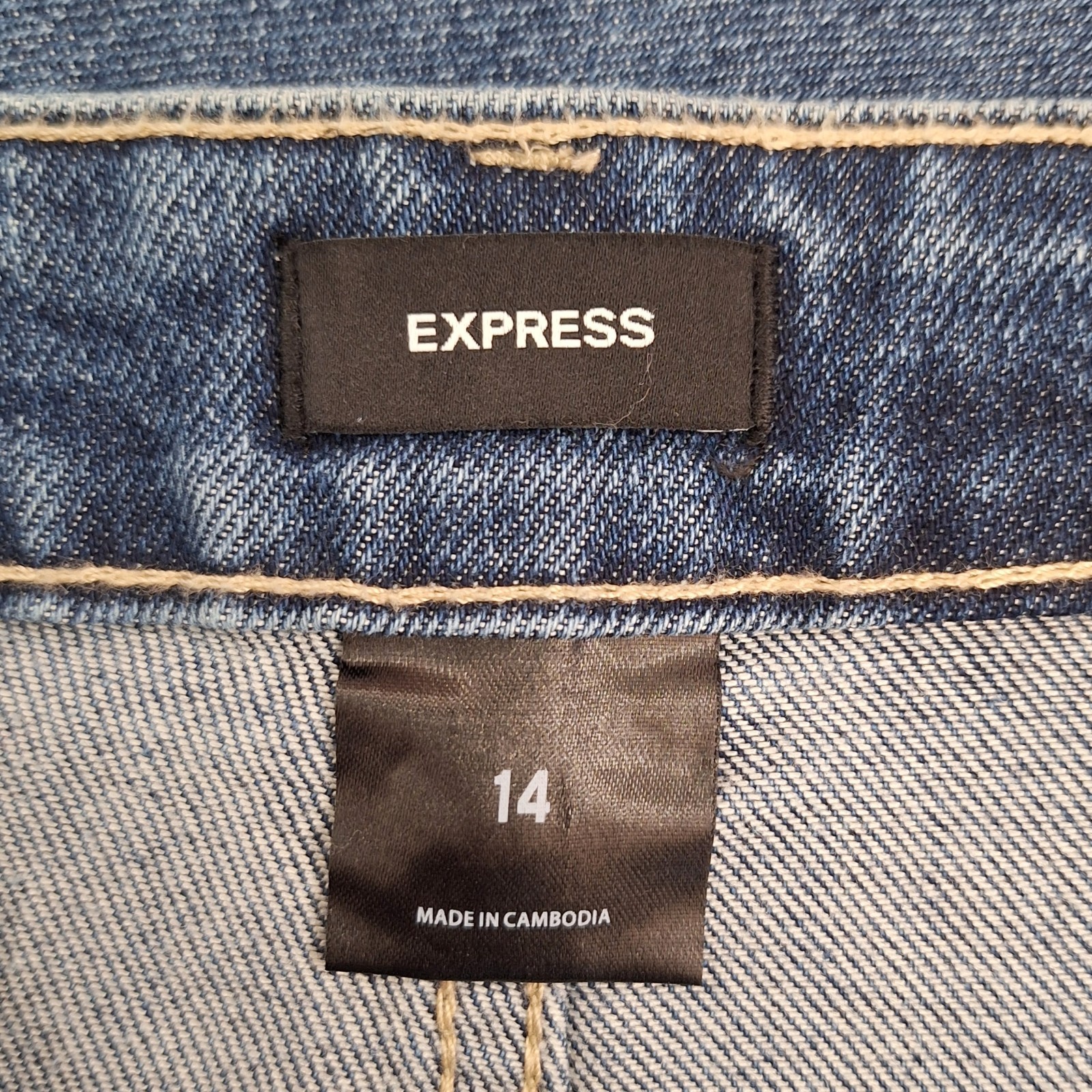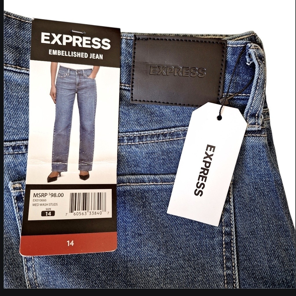 EXPRESS Straight Leg High Rise Med Wash Gold Studs 14