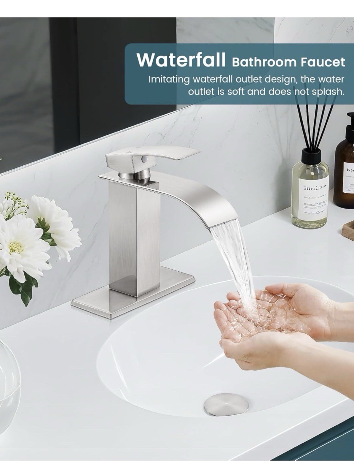 как выглядит Bathroom Faucets Brushed Nickel Waterfall Bathroom Sink Faucet Modern Single Han фото