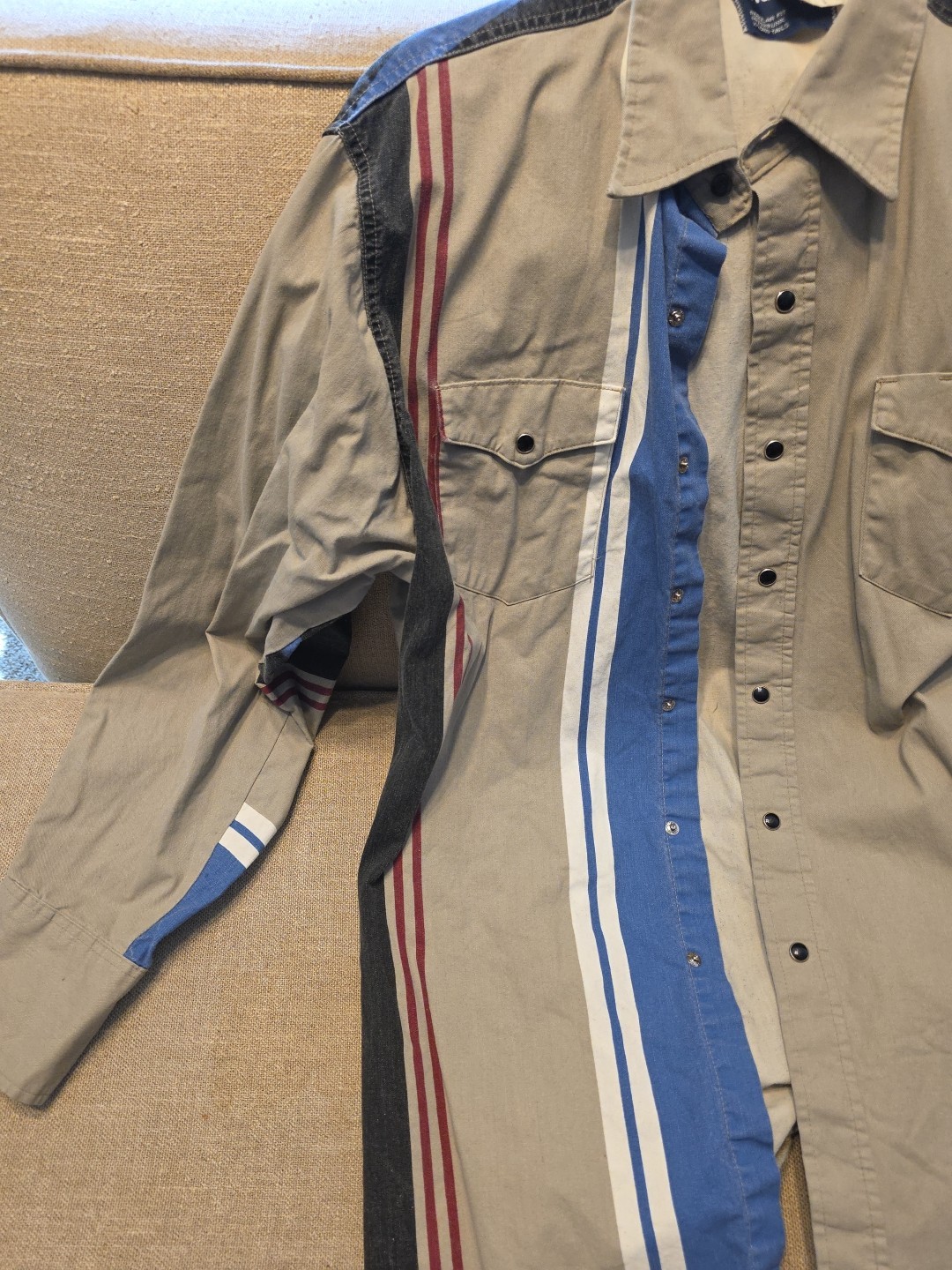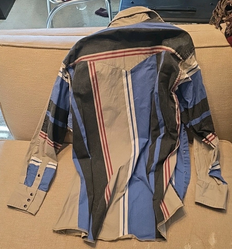 как выглядит Vintage Wrangler Brushpopper Men s Striped Pearl Snap Western Shirt Size 17x35 фото