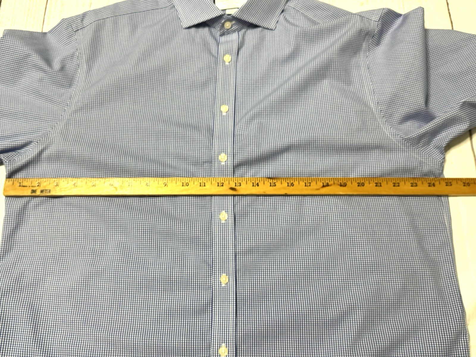 как выглядит Charles Tyrwhitt 17/35 Blue Gingham Check Non Iron Classic Fit Mens Dress Shirt фото