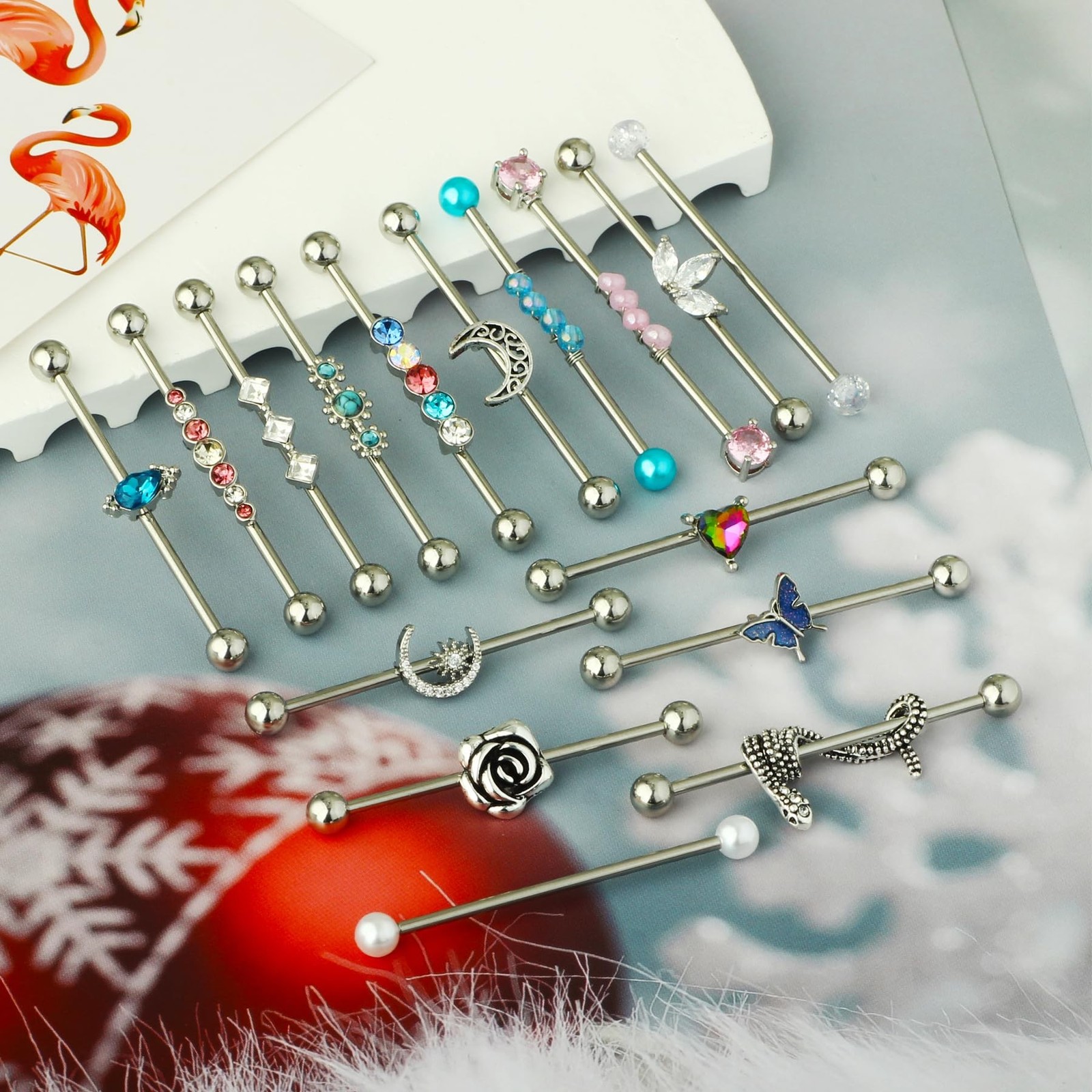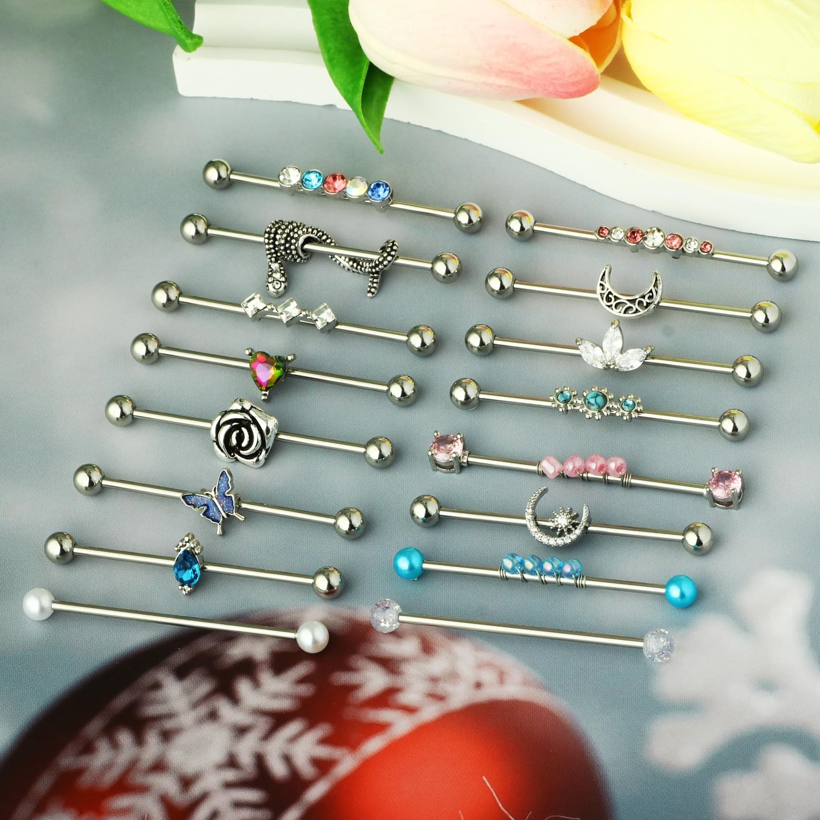 TIANCI FBYJS 7-16pcs 14G Stainless Steel Industrial Piercing Barbell Earring ...
