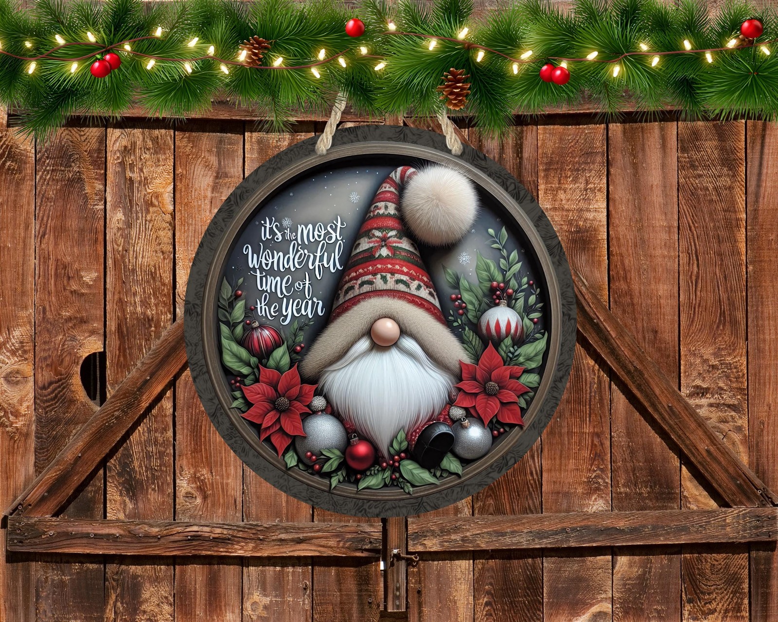 как выглядит Aluminum Christmas Sign Gnome Outdoor Wreath Decor Weatherproof Metal фото