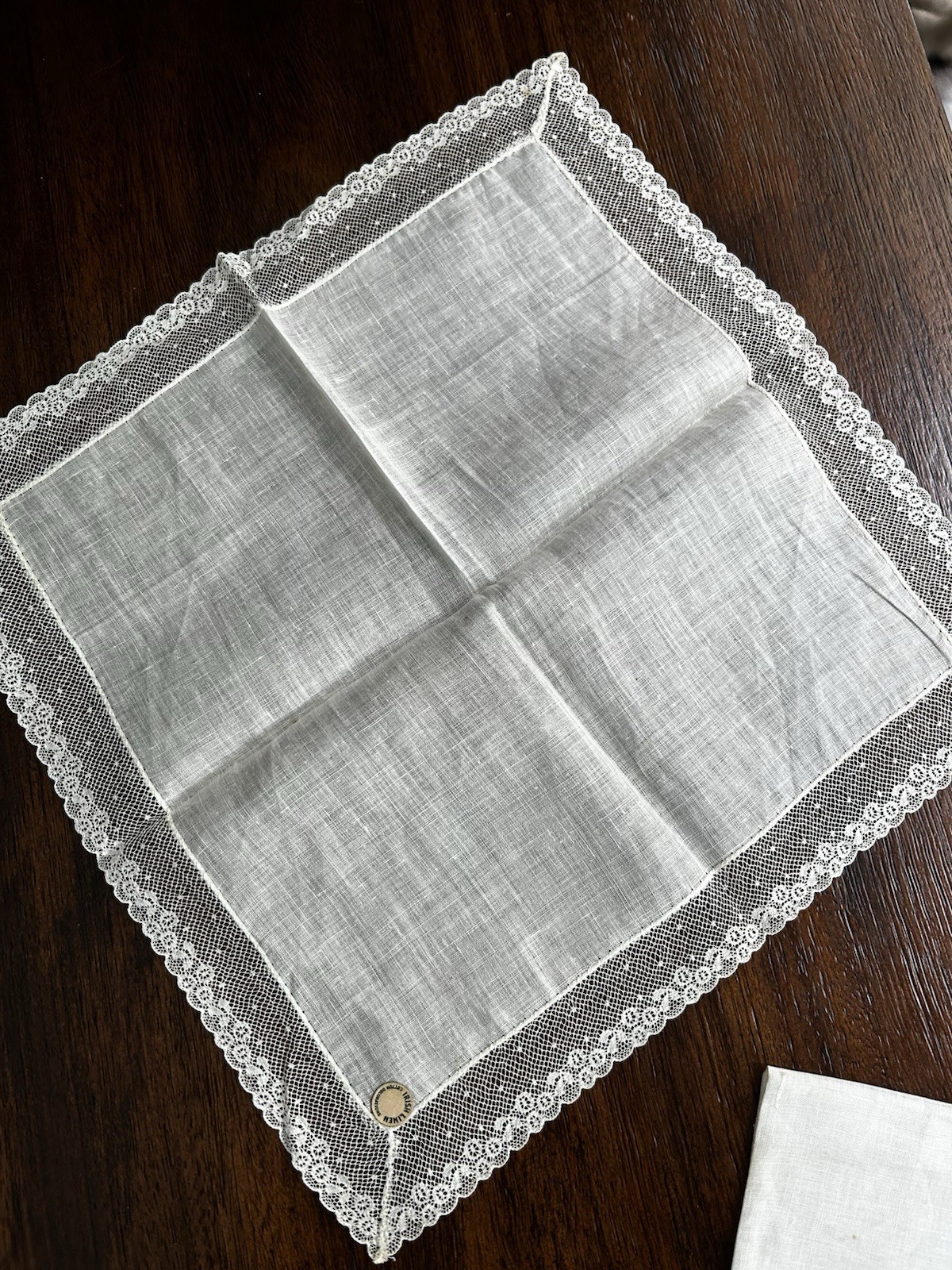 Vintage Handkerchief Hankie White Irish Linen with Lace Set of 2 NWT NOS