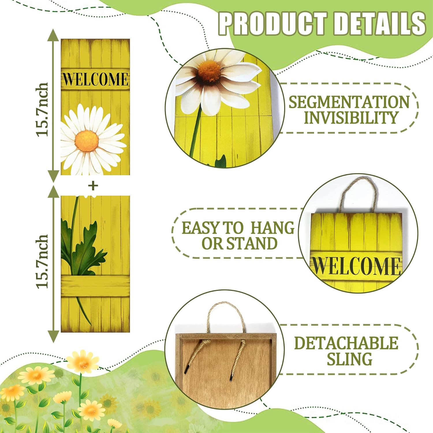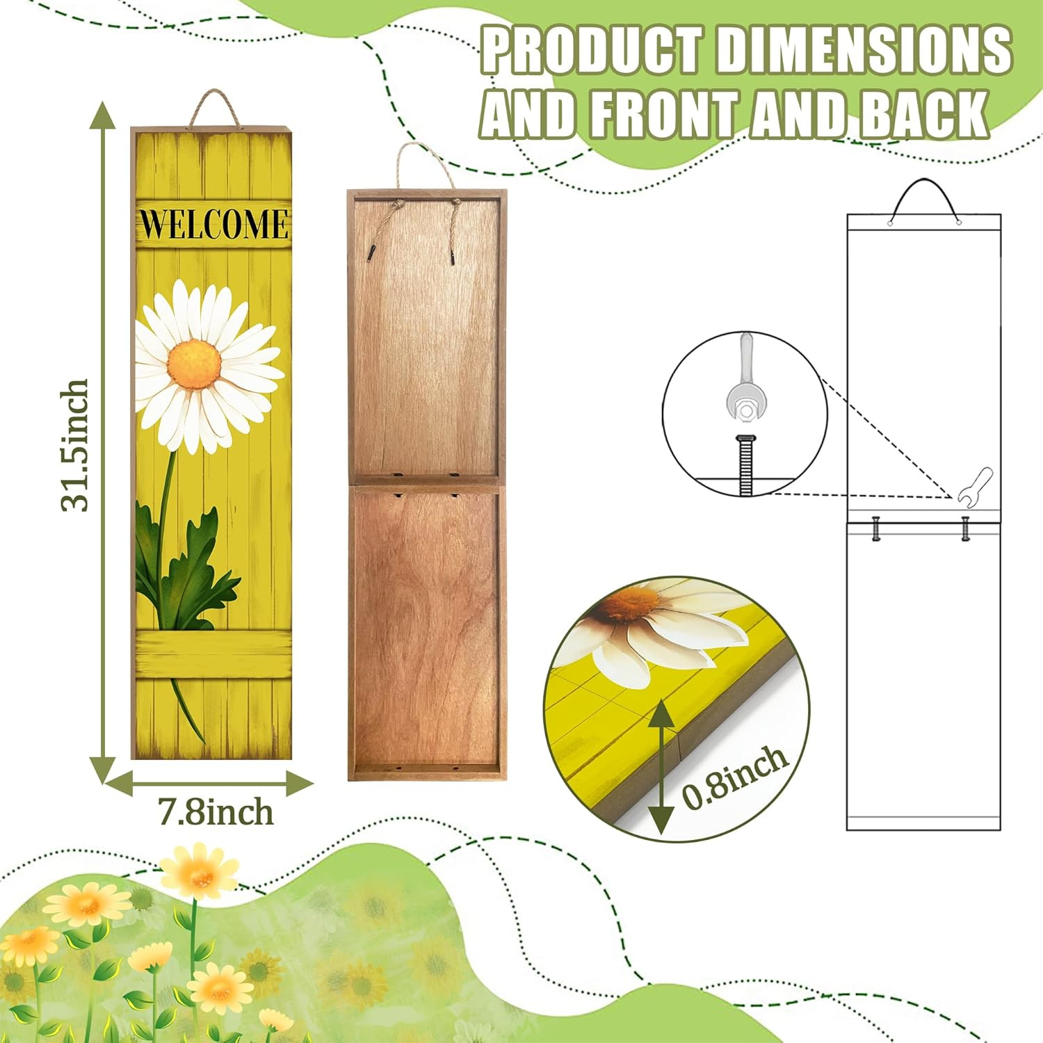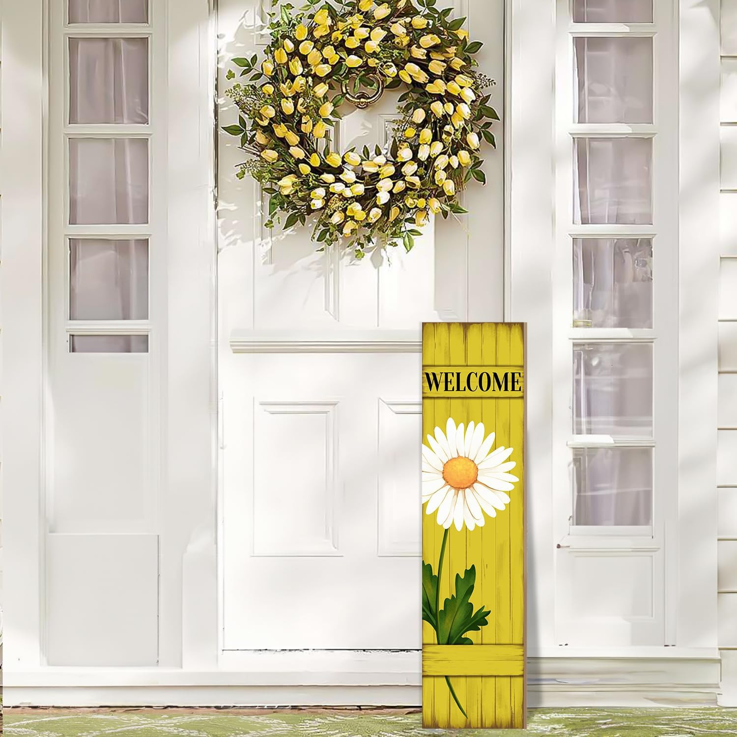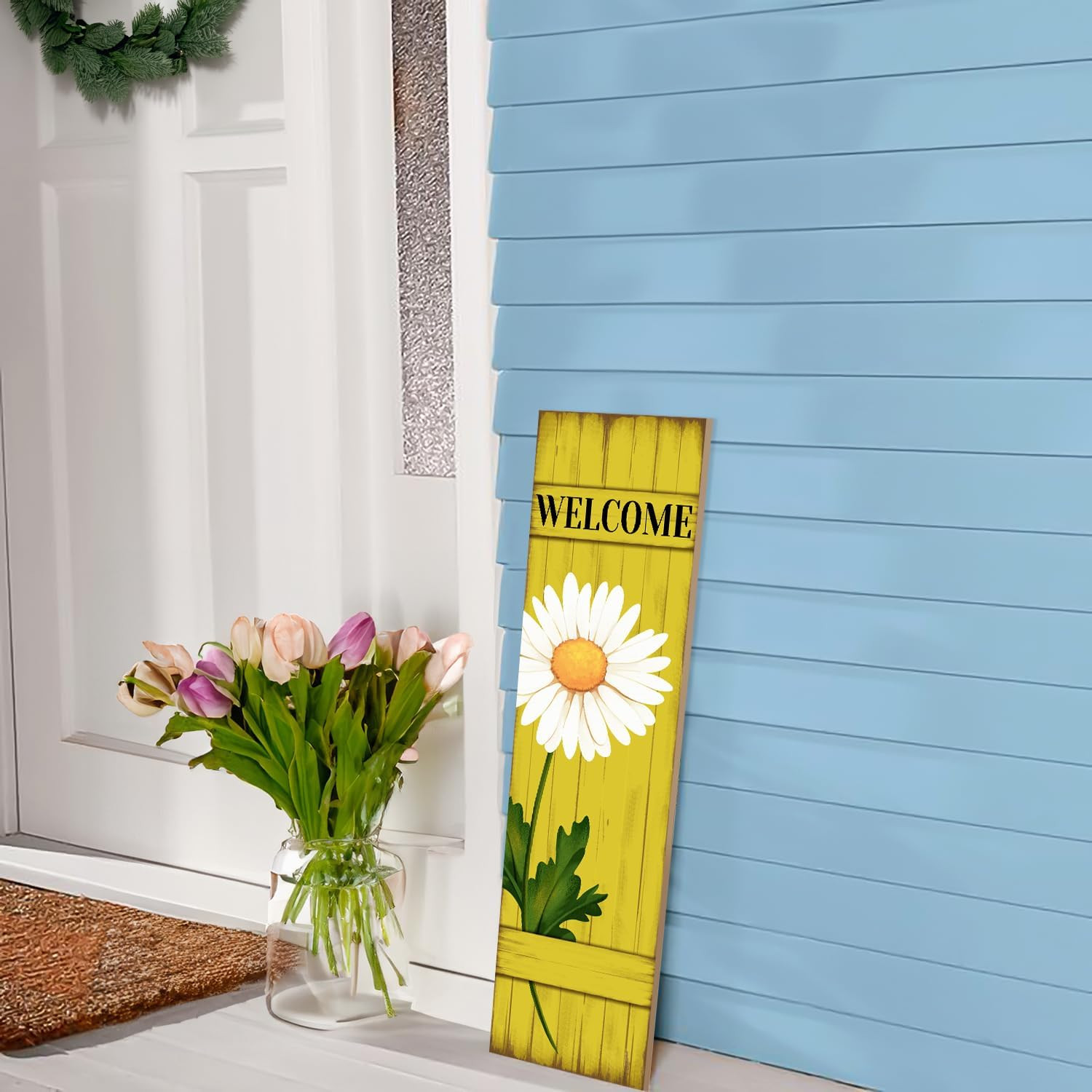 Spring Daisy Welcome Wooden Sign, Summer Rustic Daisy Porch Sign for Front Door