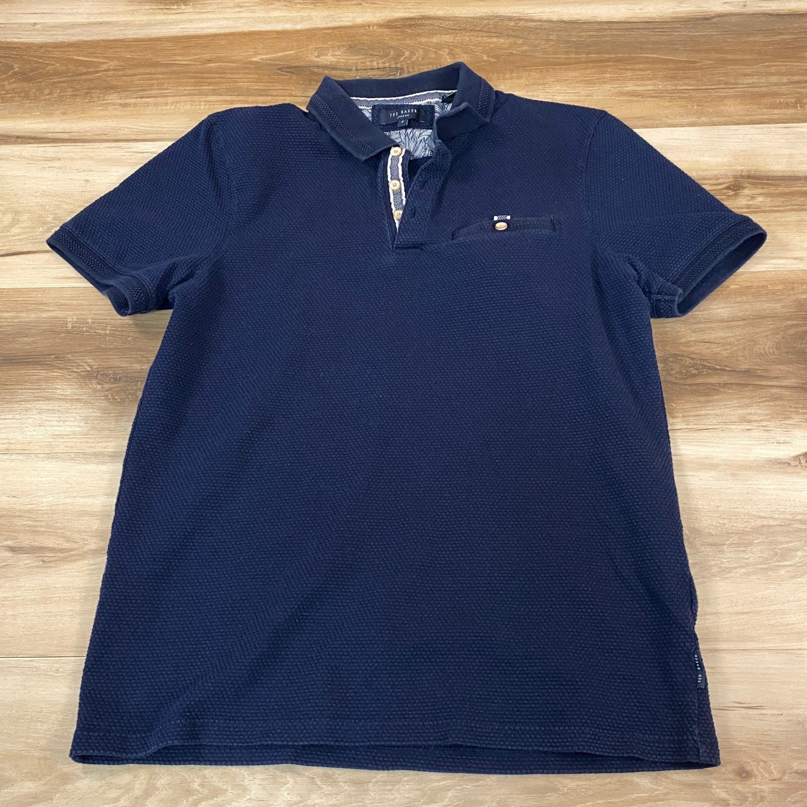 Ted Baker London Polo Shirt Medium Vardy Navy Textured Waffle Mens Size 3 Slim