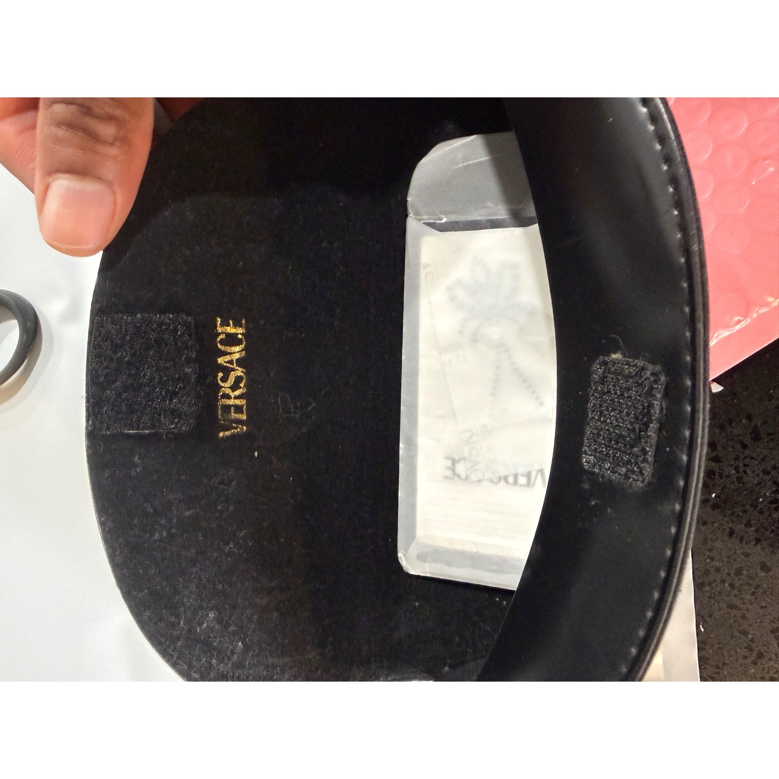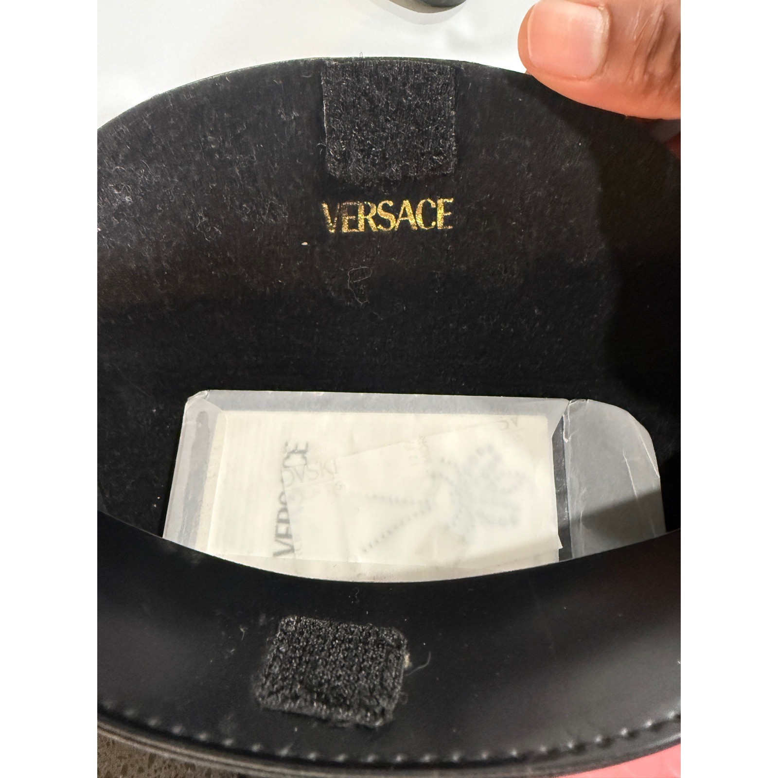 как выглядит Versace Black Medusa Embossed Sunglasses Case Semi Circle Hook and Loop Closure фото