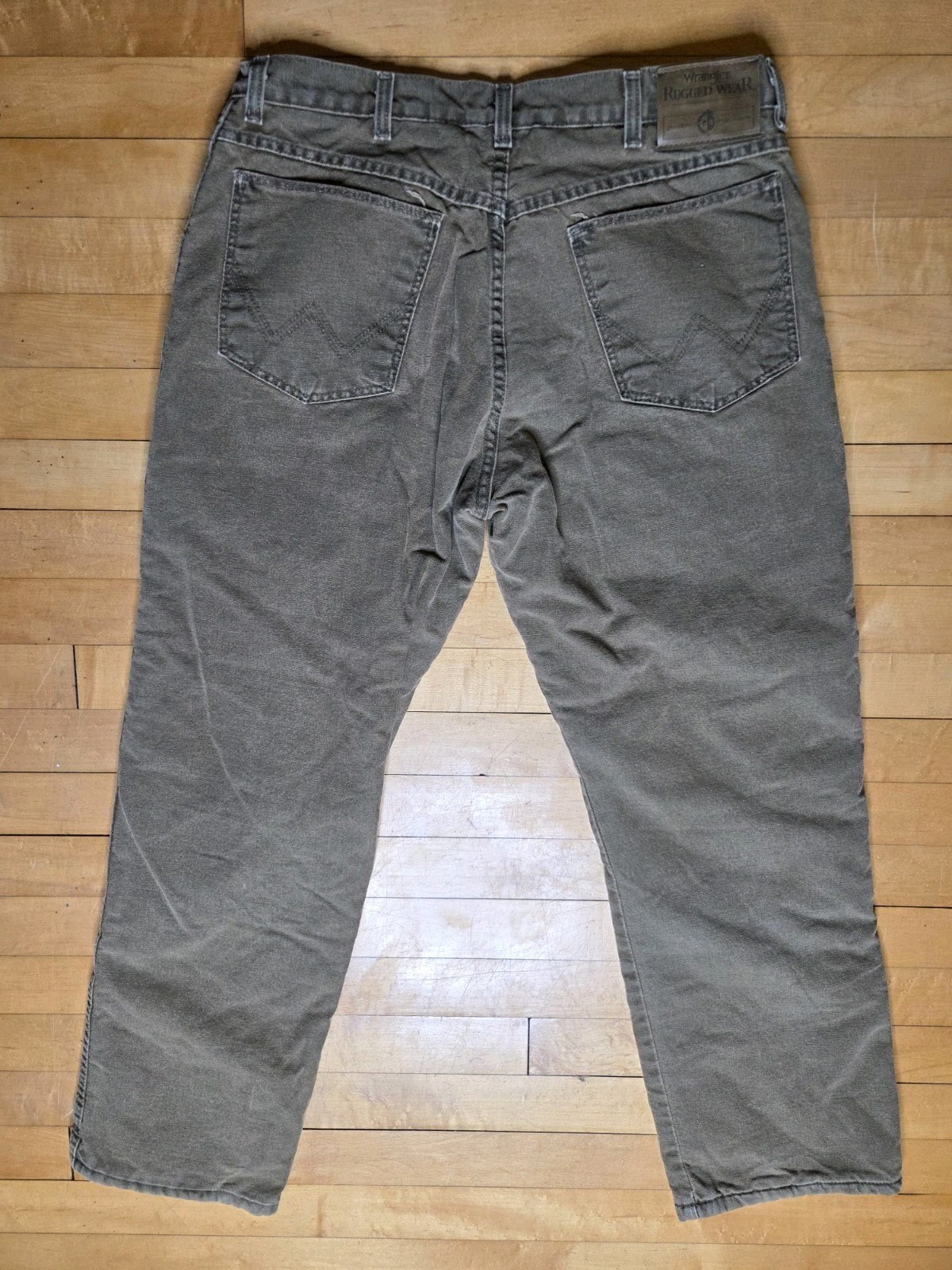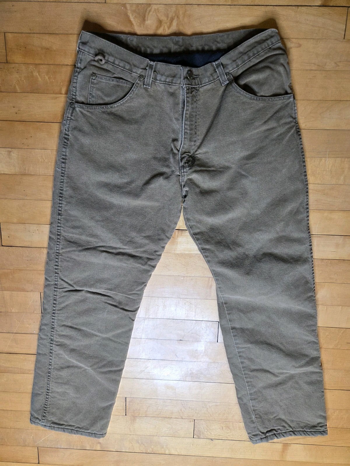 как выглядит Wrangler Rugged Wear Sz 34x30 Fleece Lined Canvas Pants Faded Brown Utility фото