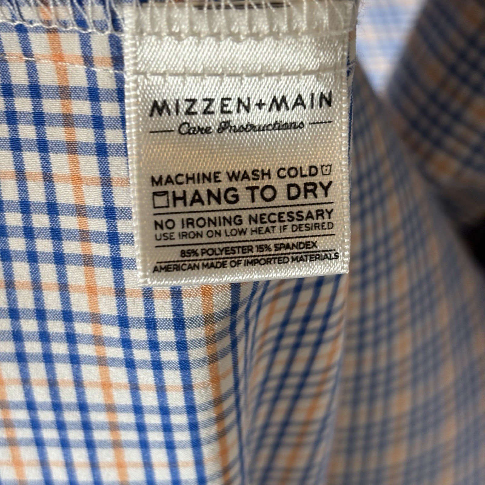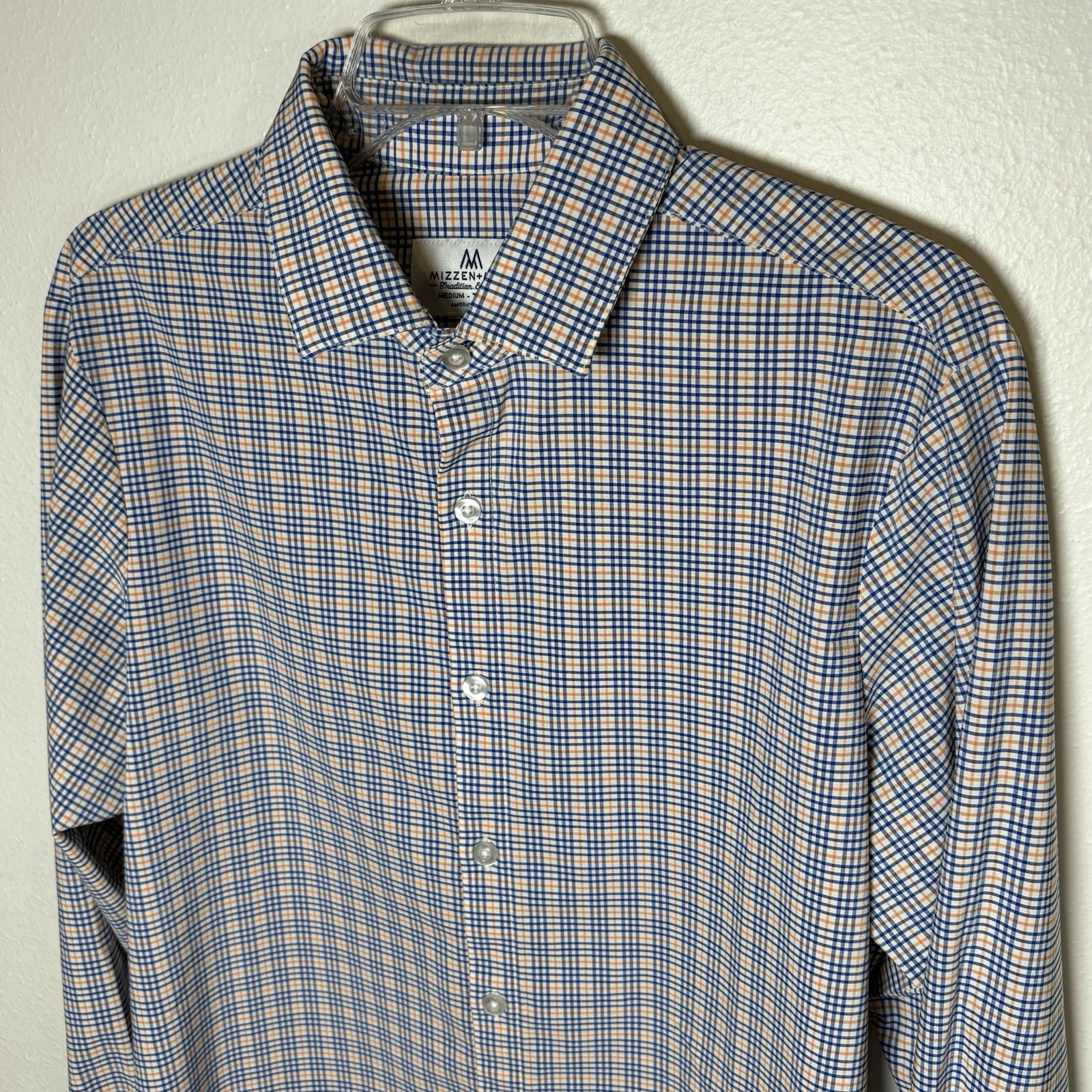 как выглядит Mizzen Main Mens Button Up Shirt Plaid Check Medium M Trim Fit Performance фото