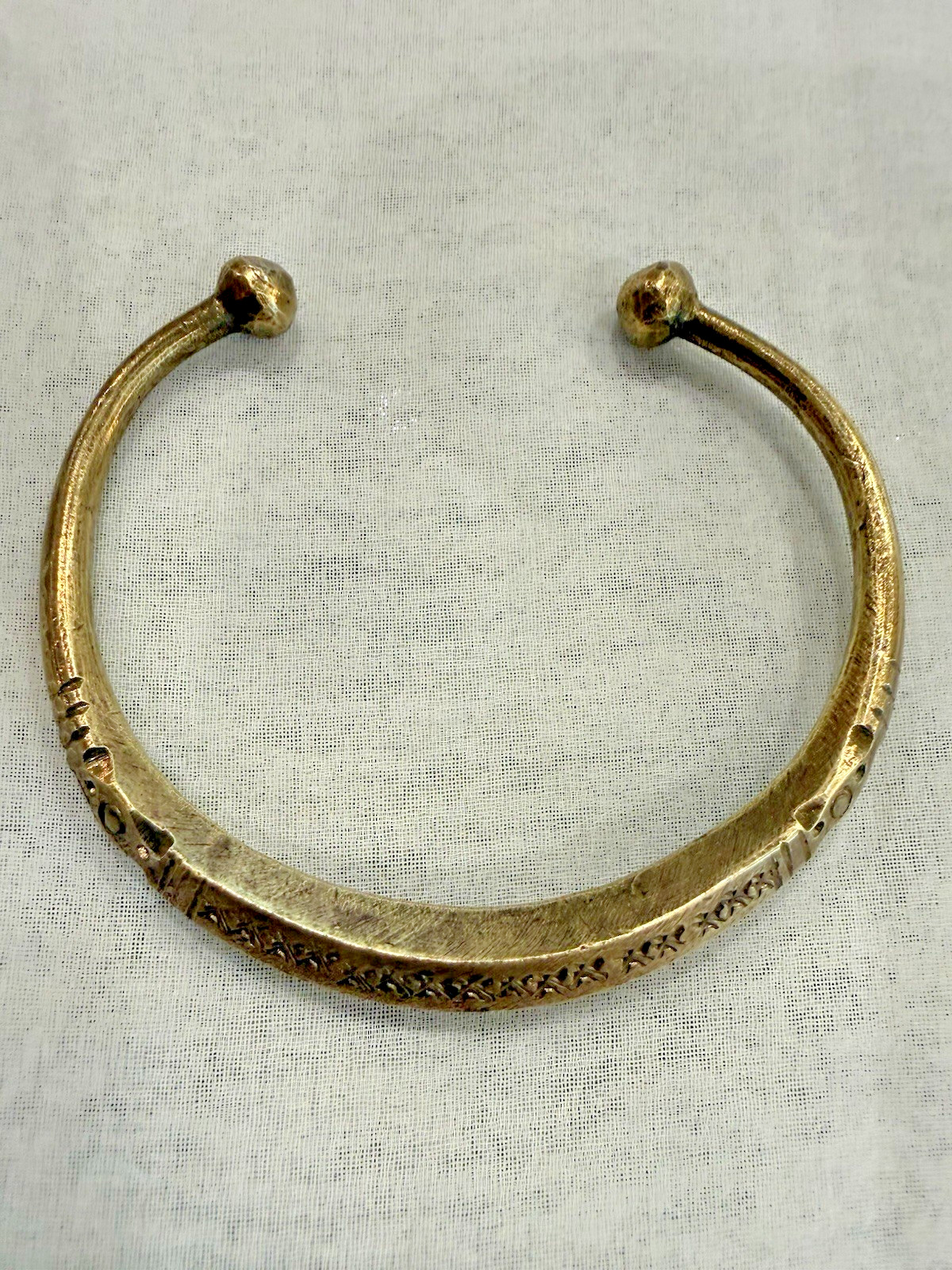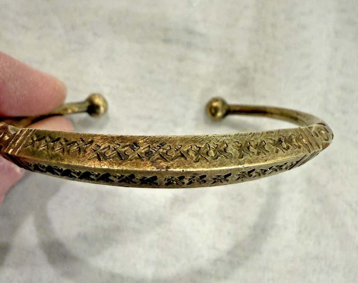 Vintage African Tuareg Etched Brass Cuff Bracelet