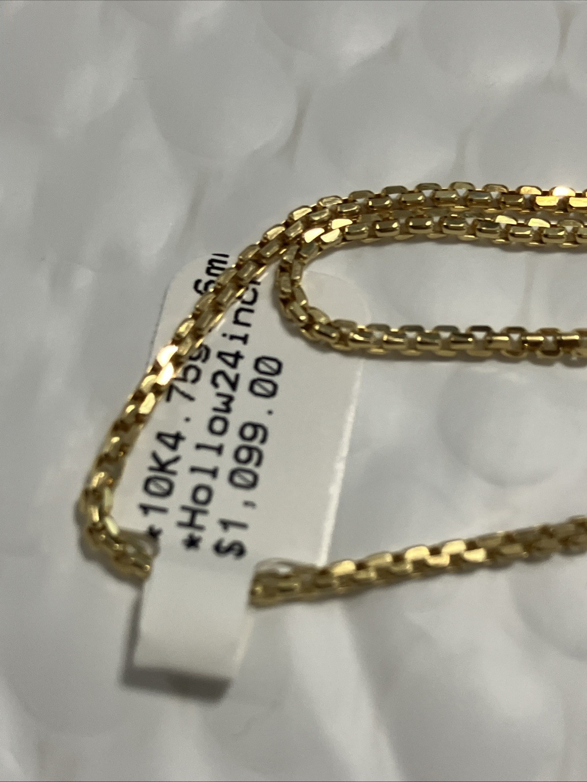10k Real Gold Rounded Box Chain 4.75 Grams 1.6mm 24 Brand New with Tag 10k