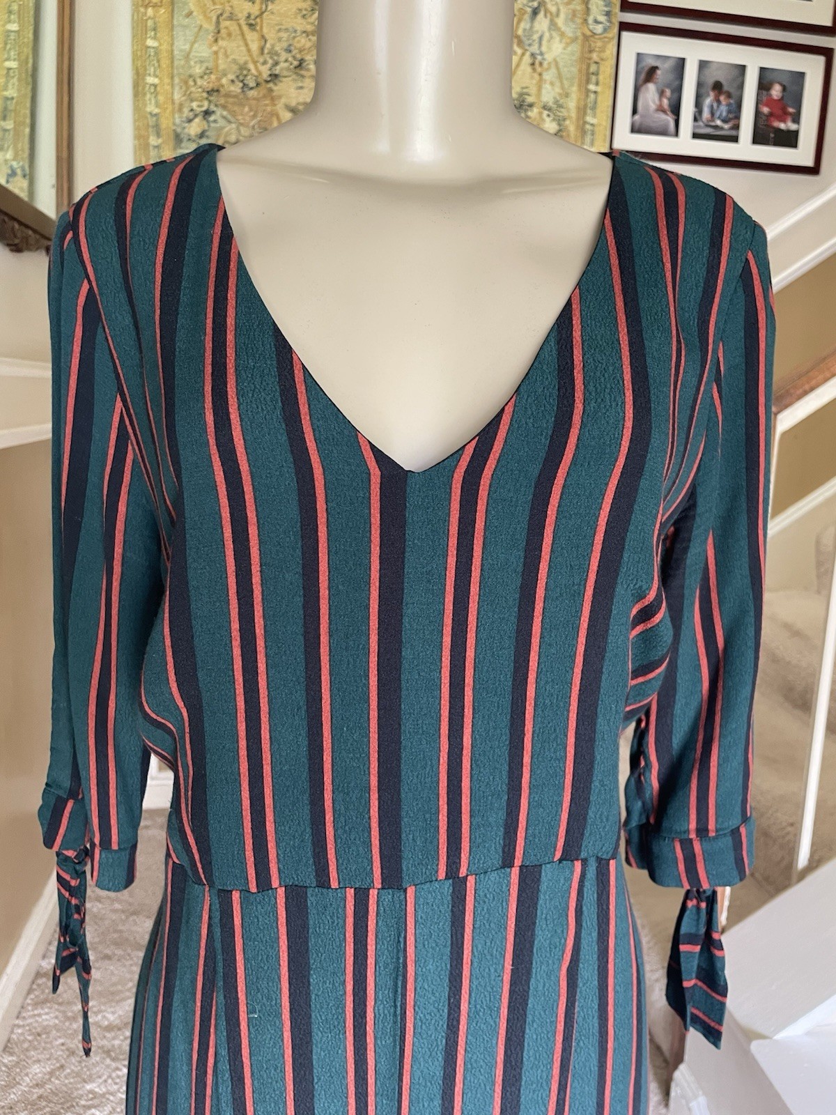 как выглядит Wild Fable Striped V Neck Jumpsuit Women s Med Indie Flowy Green Black Red Chic фото