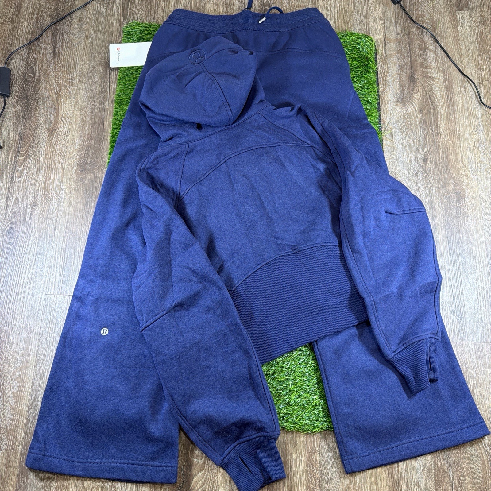 как выглядит Lululemon Womens Navy Blue Hoodie Pants Sweatsuit Set, Pockets, Elastic Waist фото