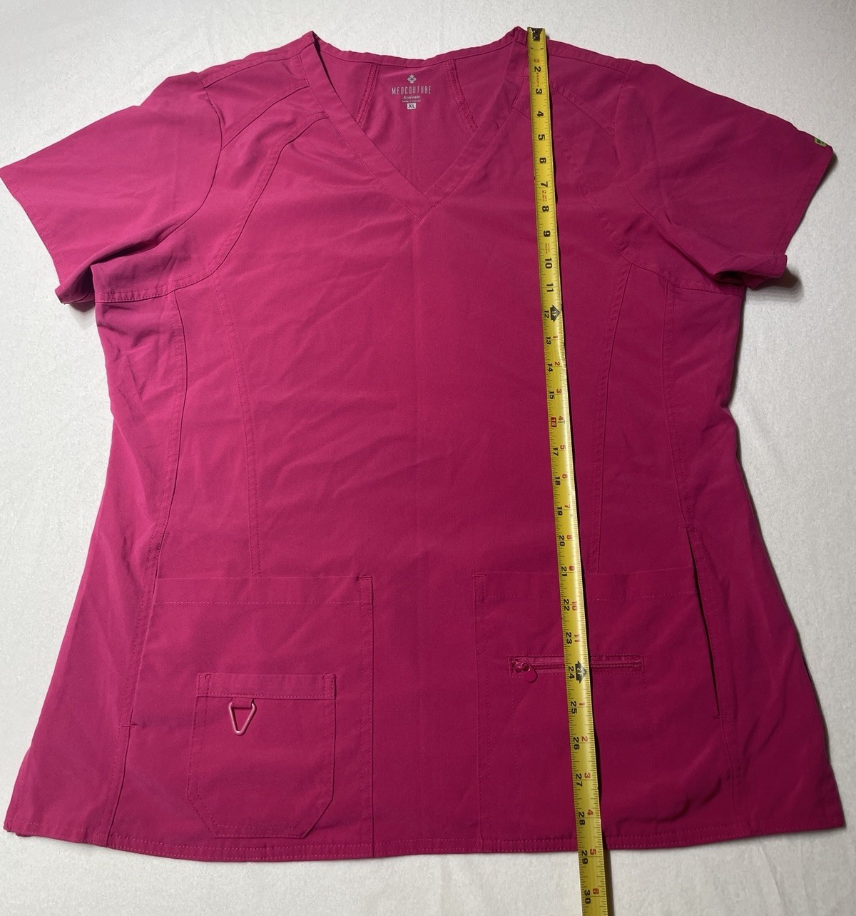 Med Couture XL Women's V-Neck Racerback Magenta Scrub Top Style 8416