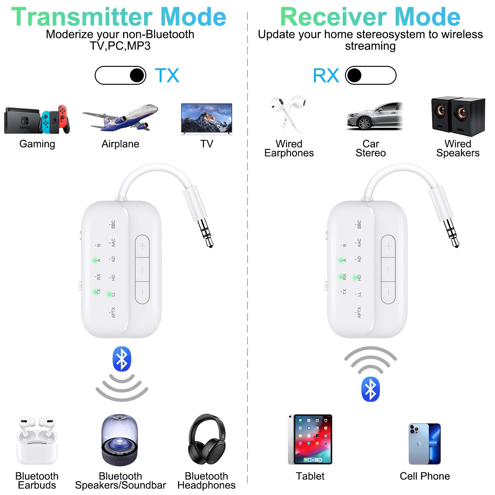 Bluetooth Transmitter Receiver, 2-in-1 V5.3 Wireless Adapter for Airplane, TV...
