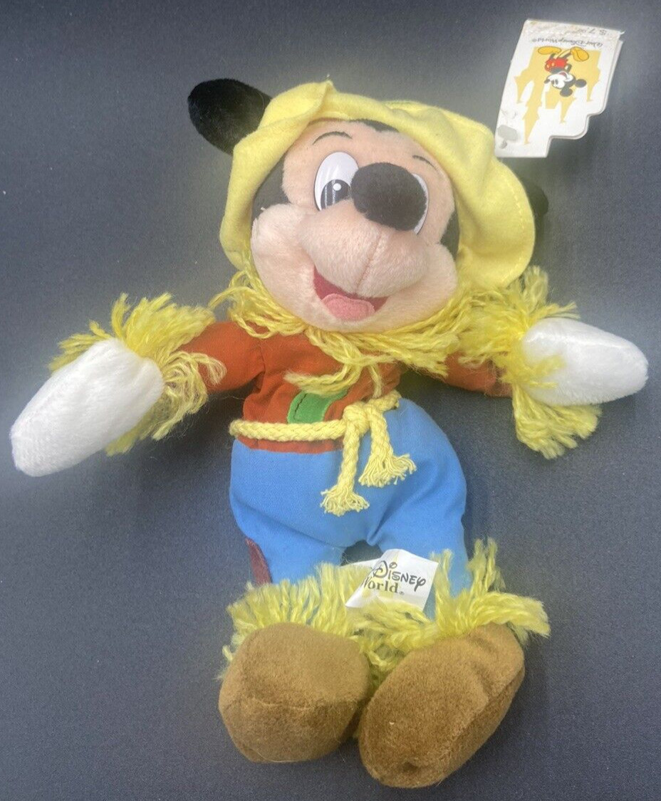 Walt Disney World Scarecrow Mickey Mouse Bean Bag Plush 8 Thanksgiving Fall NEW