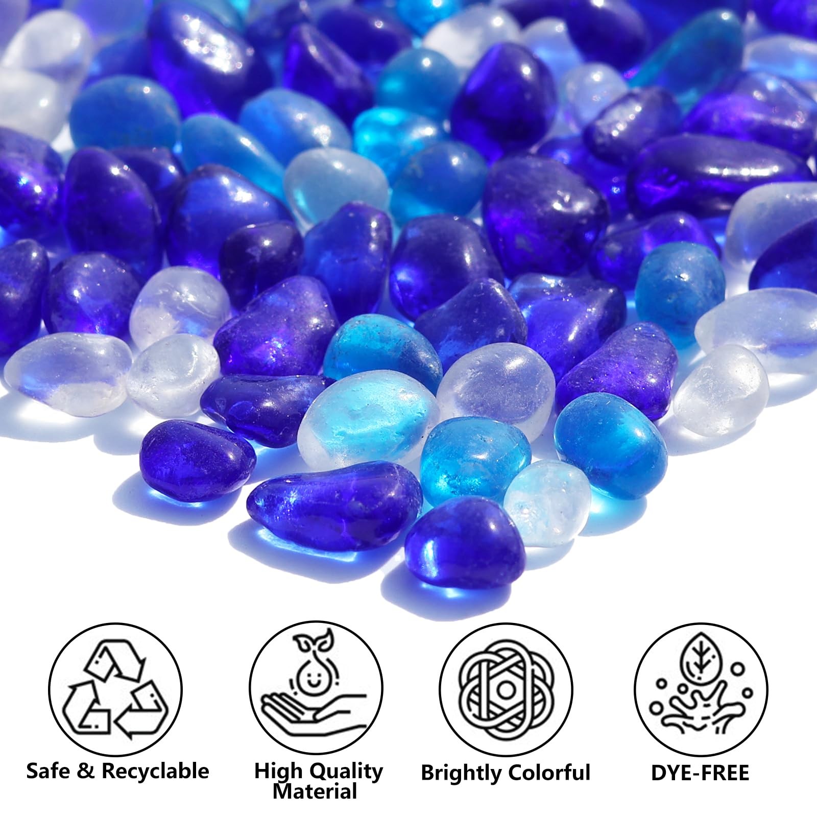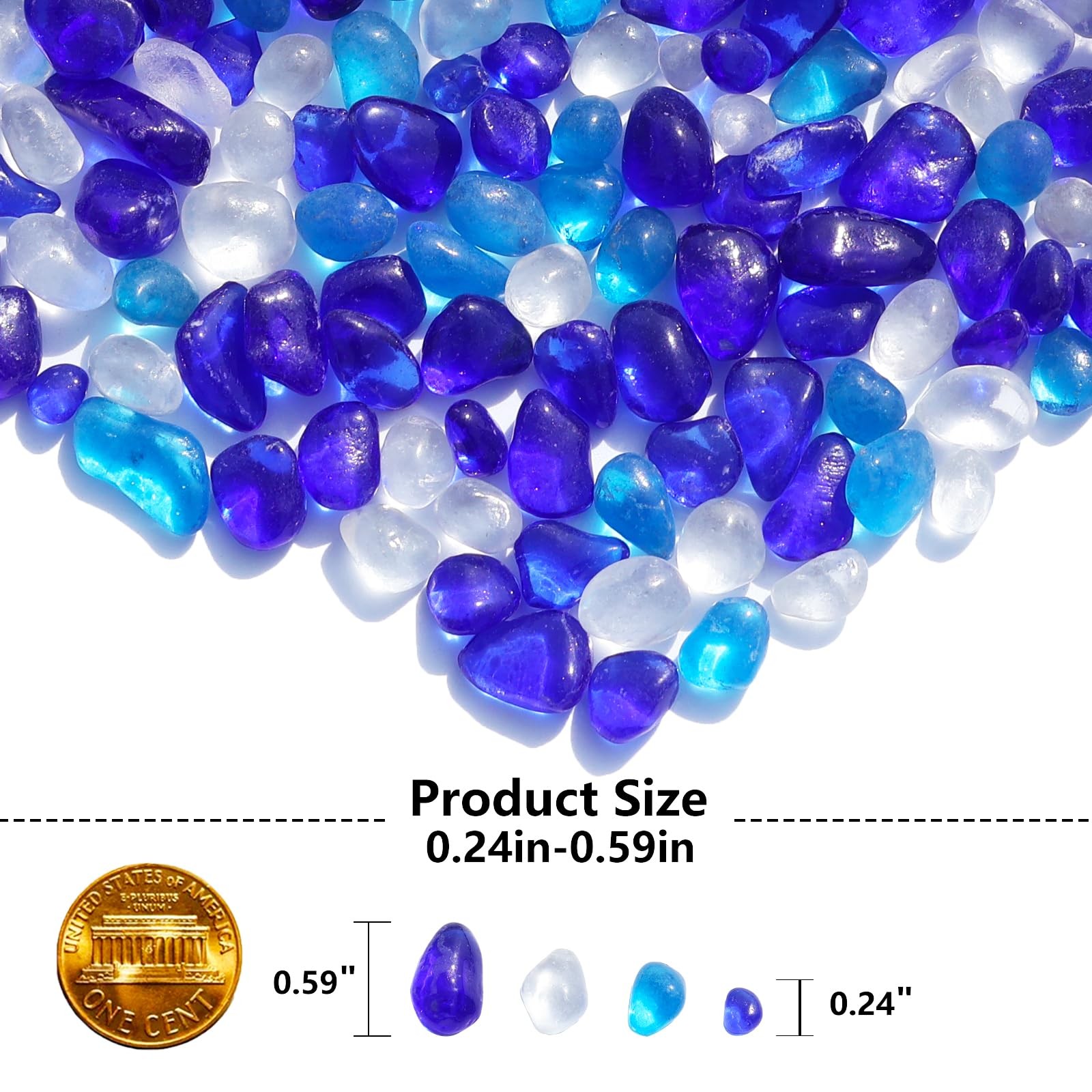 Sea Glass Stones - Blue Mixed Clear Glass Pebbles Gemstones - Perfect for Aqu...
