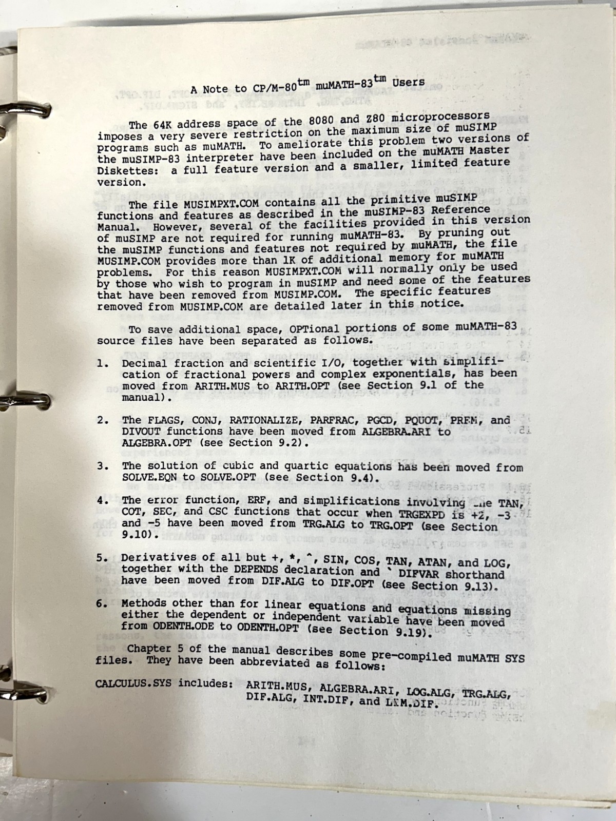 Microsoft MuMATH-83 Manual Software