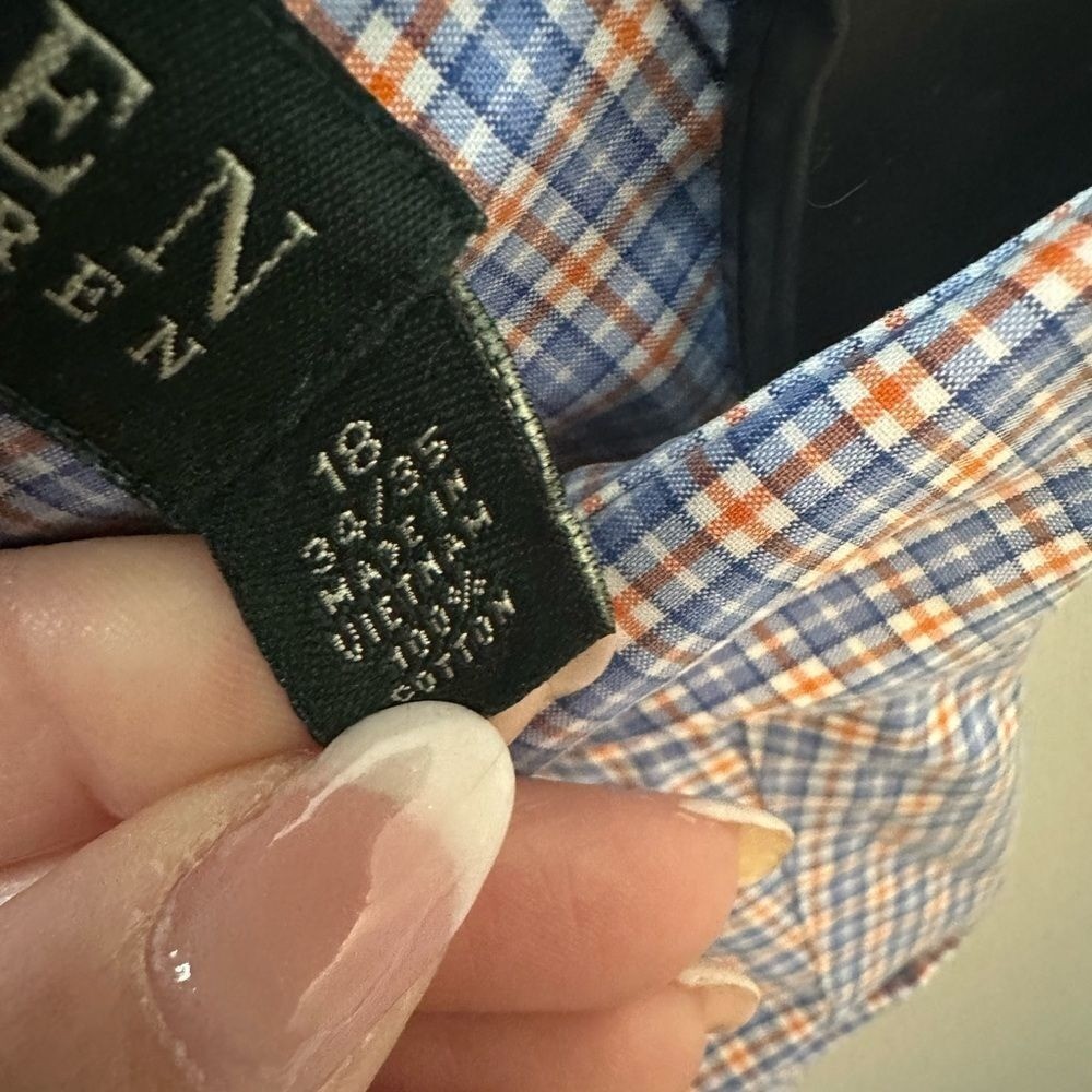 как выглядит Polo Ralph Lauren Mens Blue/orange Checkered Shirt 18 neck 34/35 arm length фото