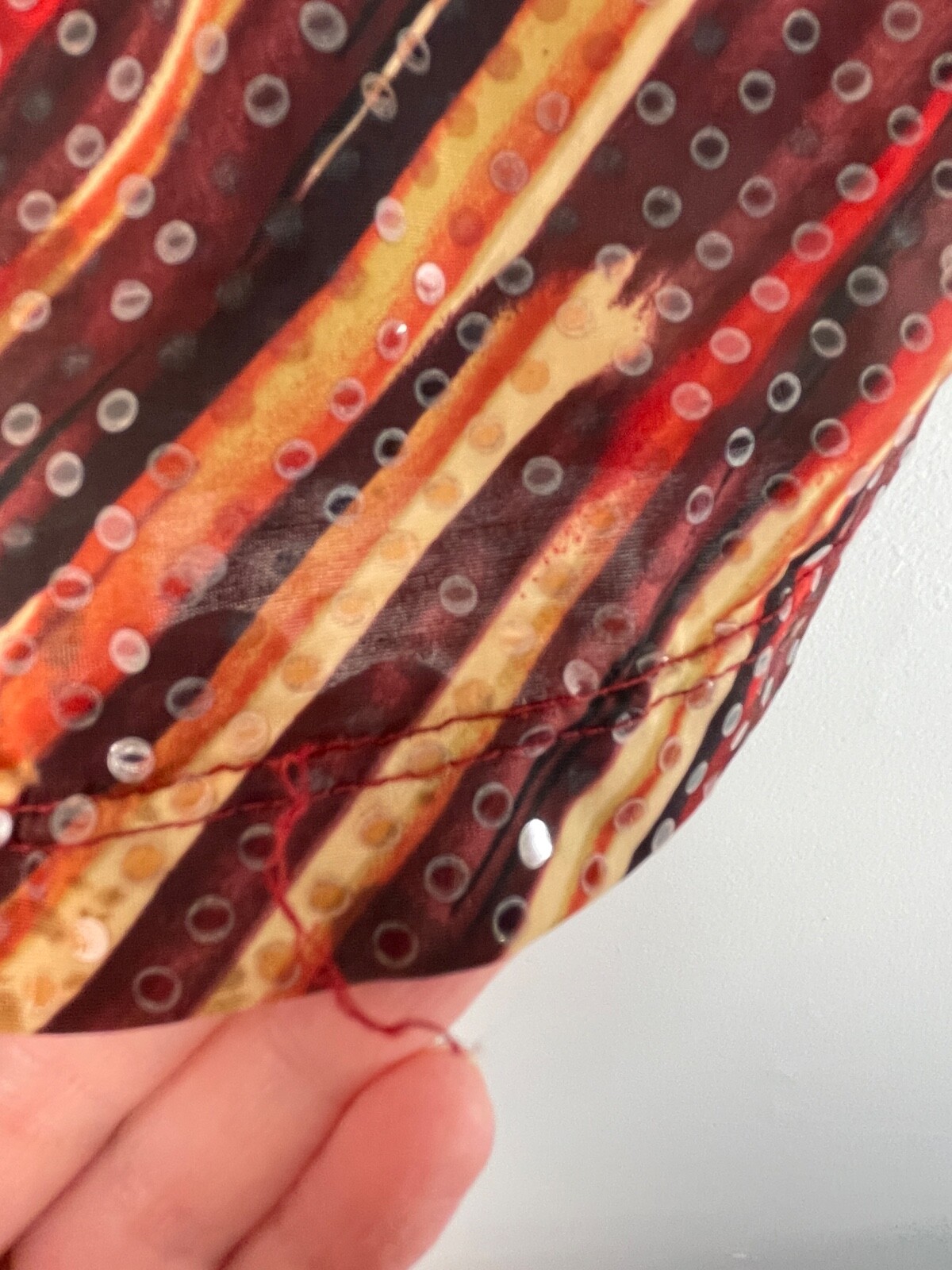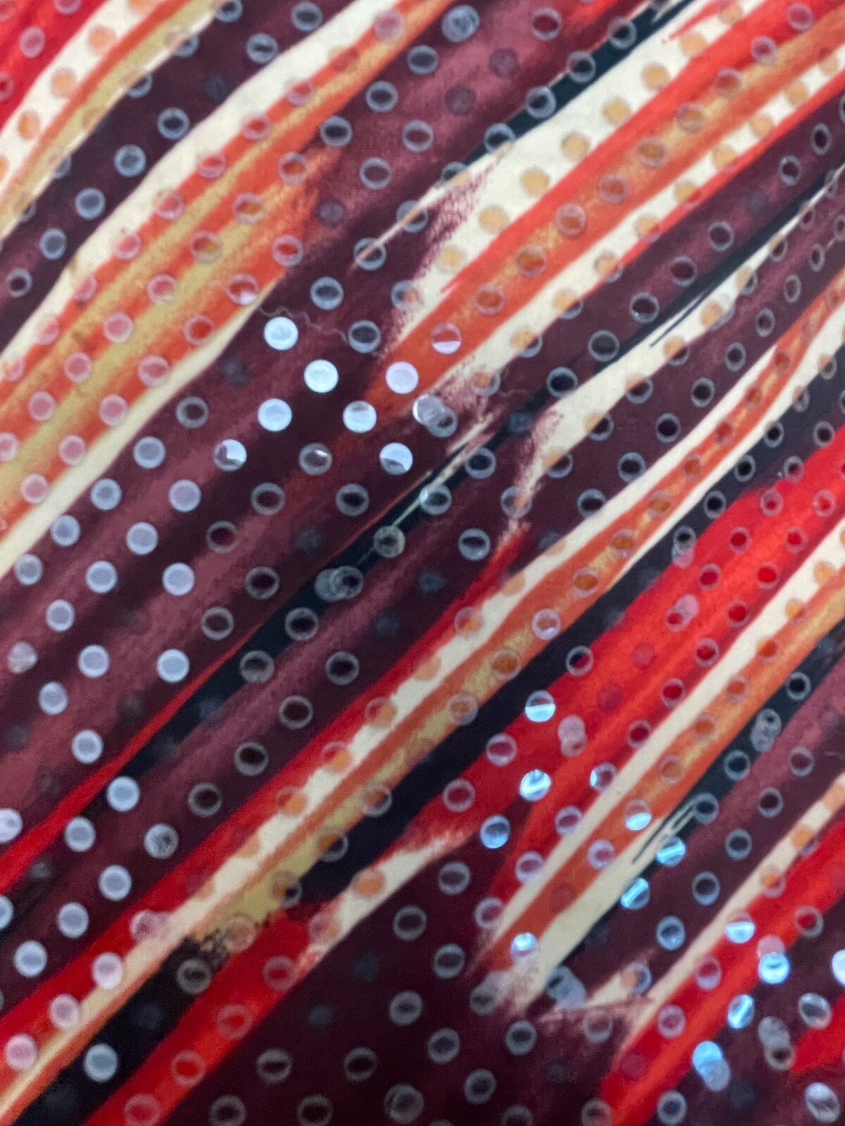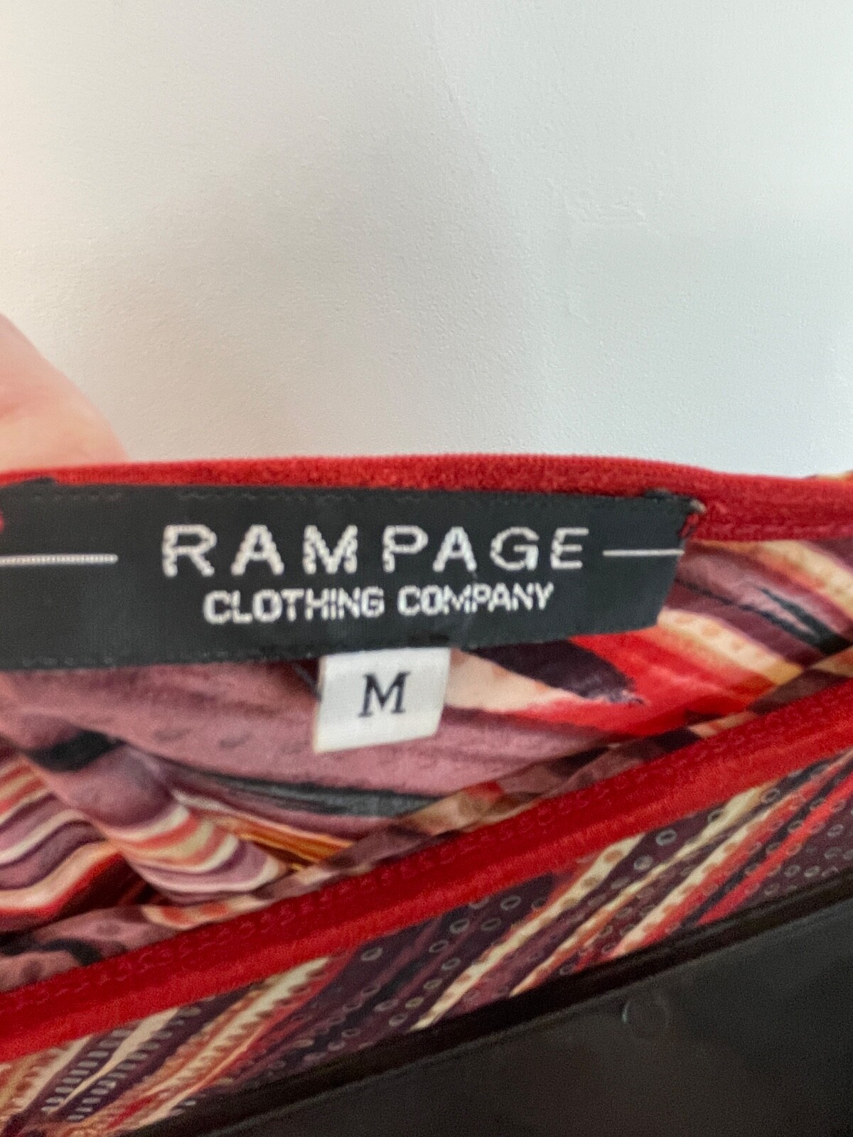 как выглядит Vtg 90s Rampage Stretch Midi Skirt Size Medium Red Brown Lines Shiny Slit USA фото
