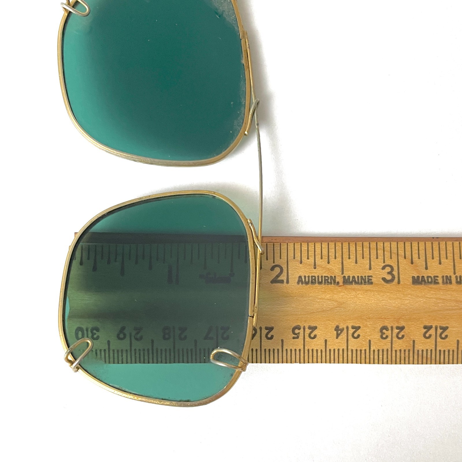 как выглядит Vintage Polaroid Gold Toned Metal Clip On Sunglasses With Green Lenses фото