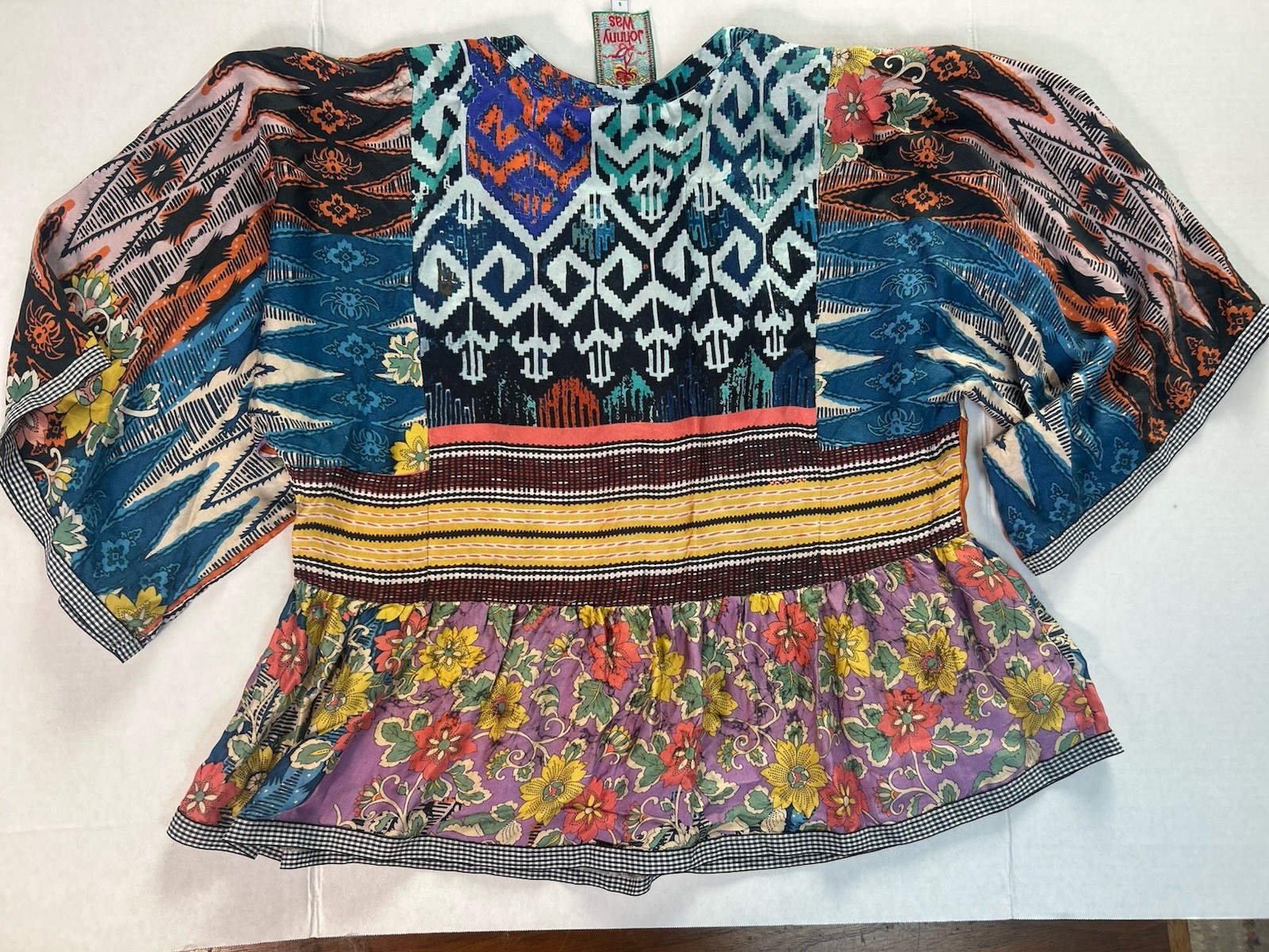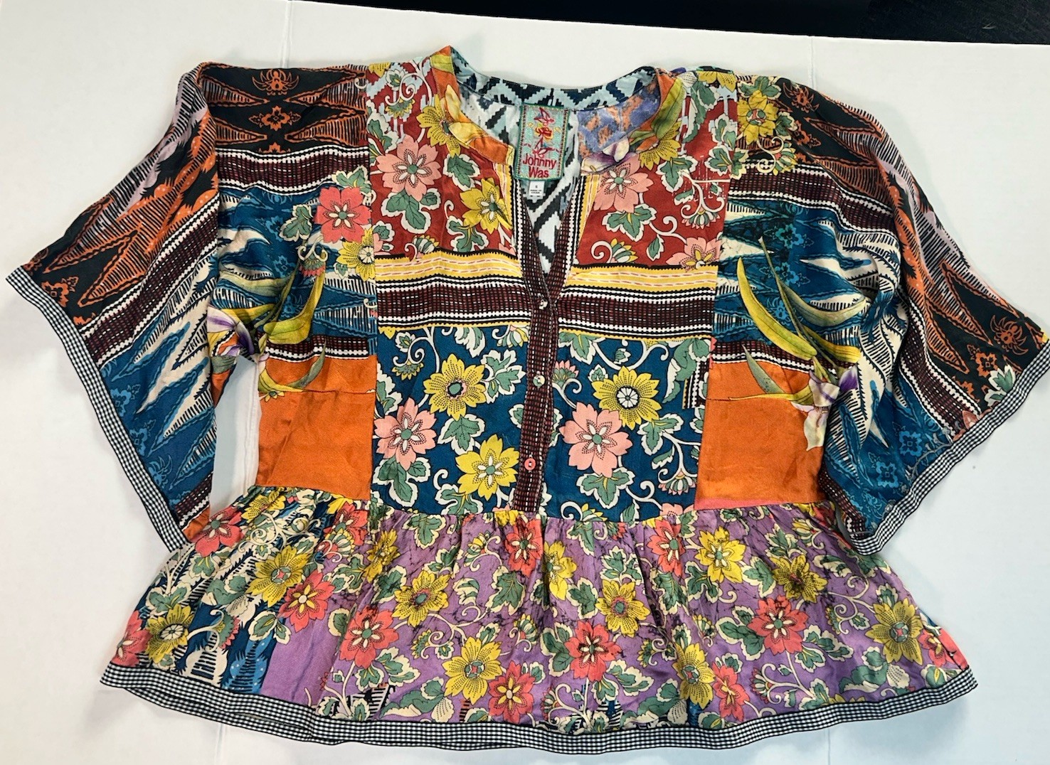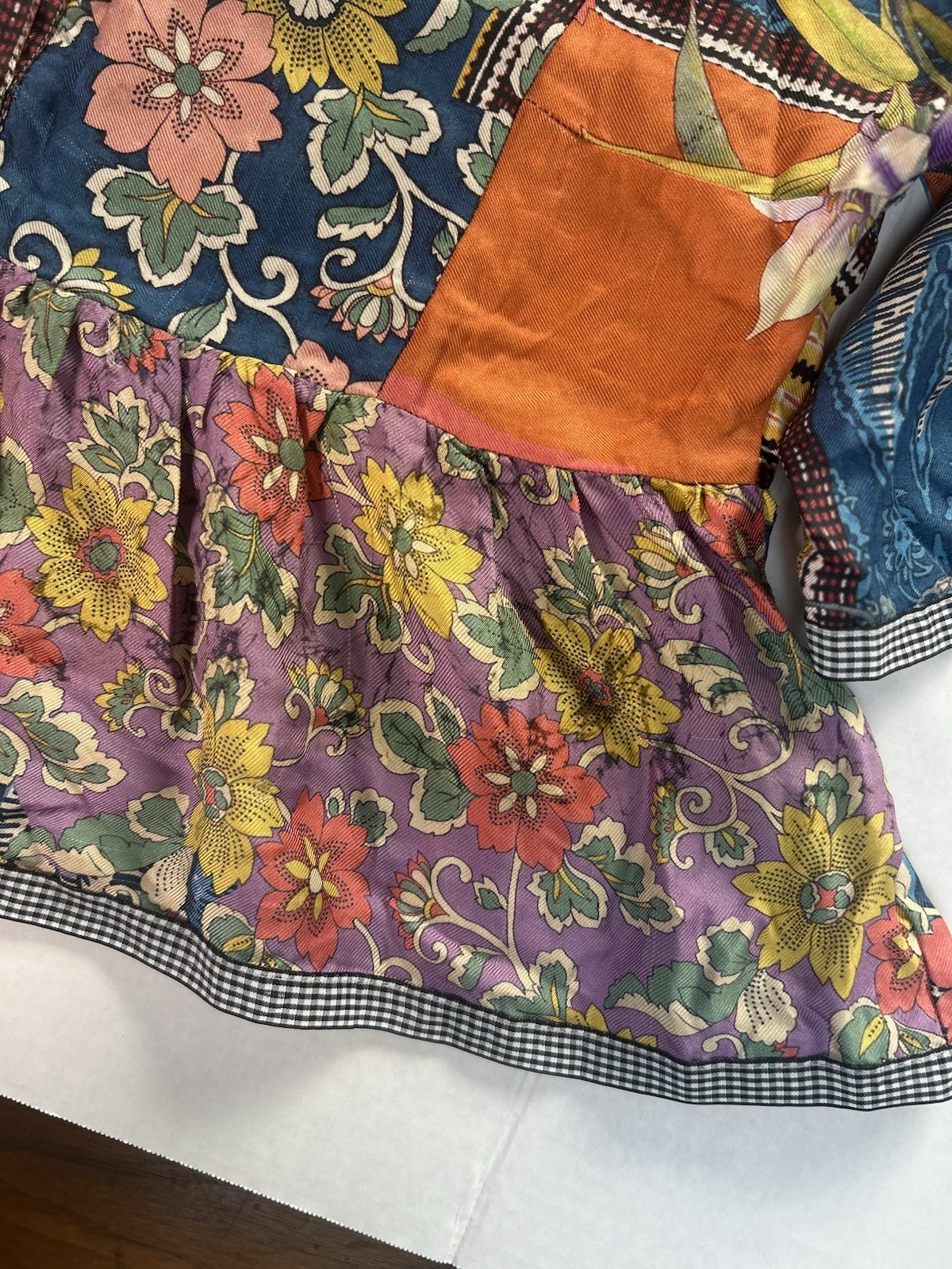 как выглядит JOHNNY WAS "Miranda" Mixed Silk Print Blouse Size S фото