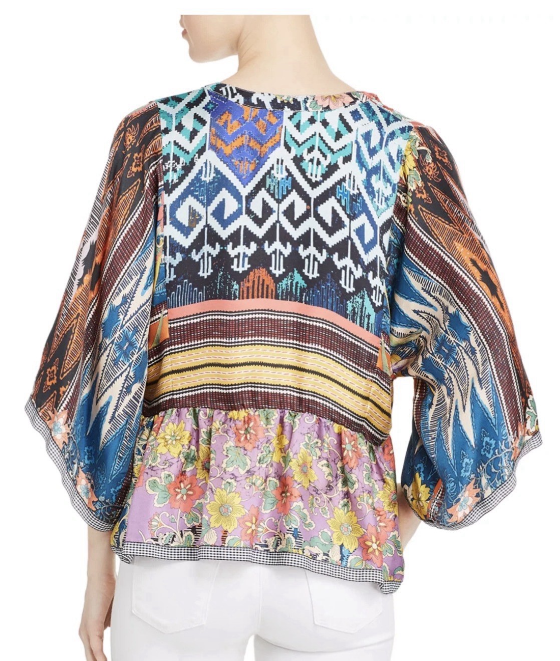 JOHNNY WAS Miranda Mixed Silk Print Blouse Size S
