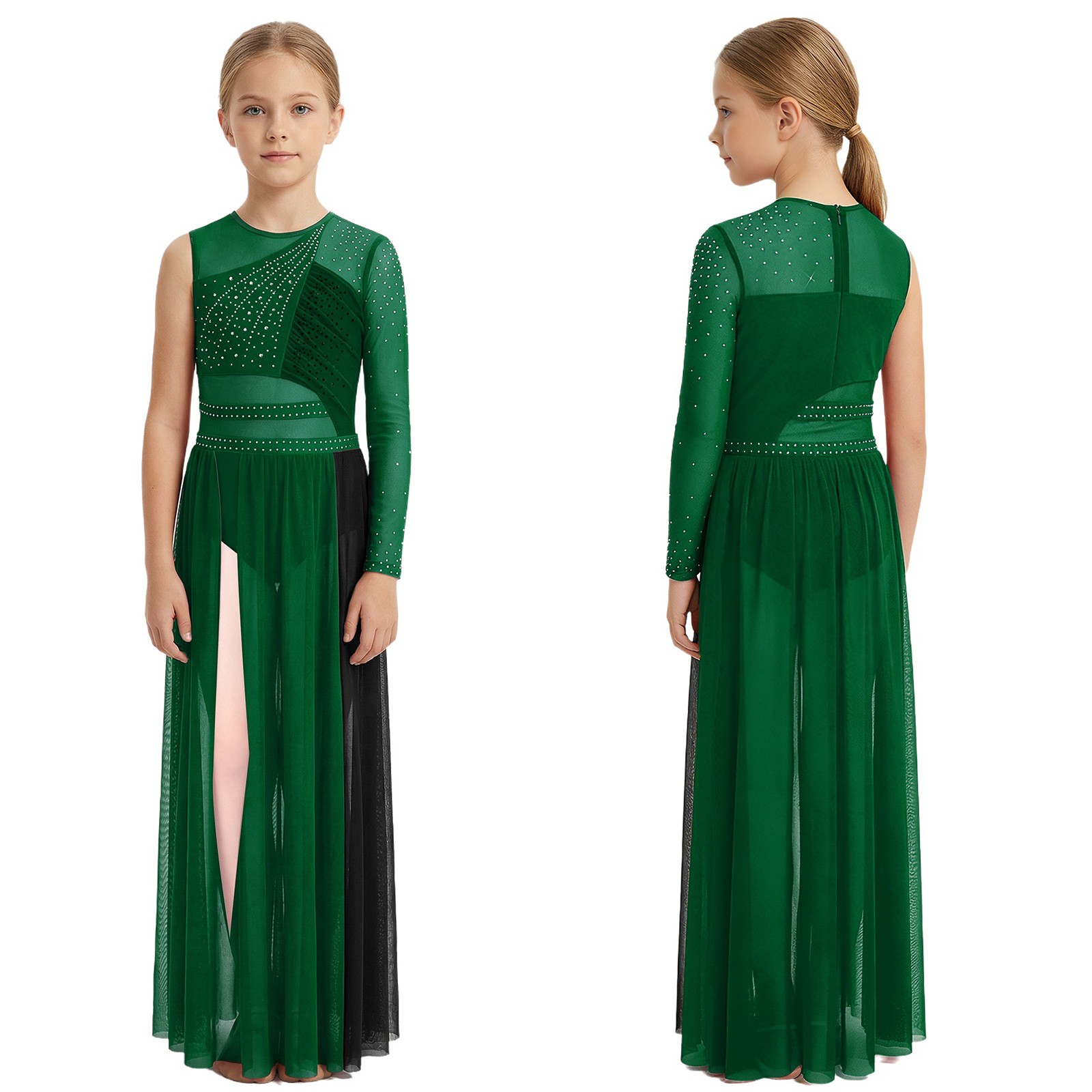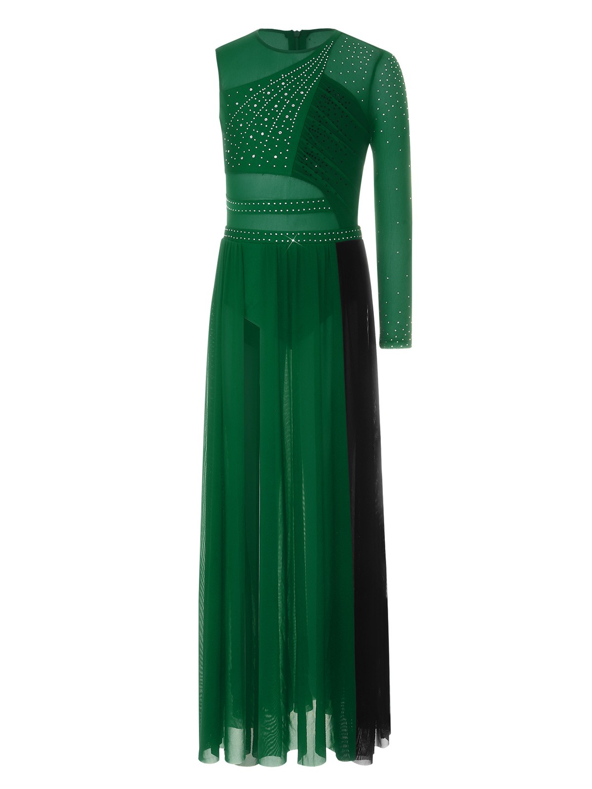 Girls Lyrical Dance Flowy Contemporary Sparkly Dress Costume Color Block Party