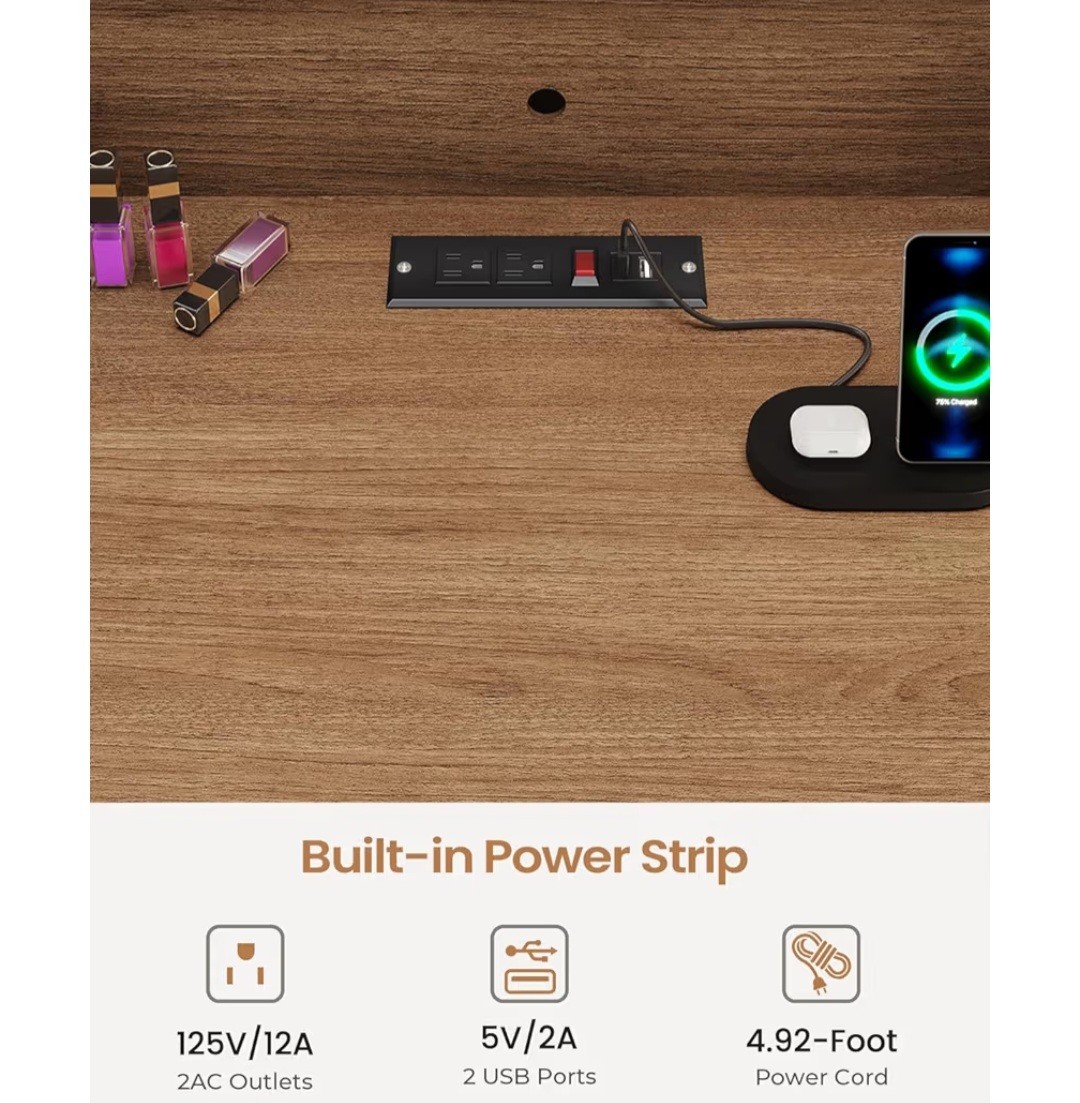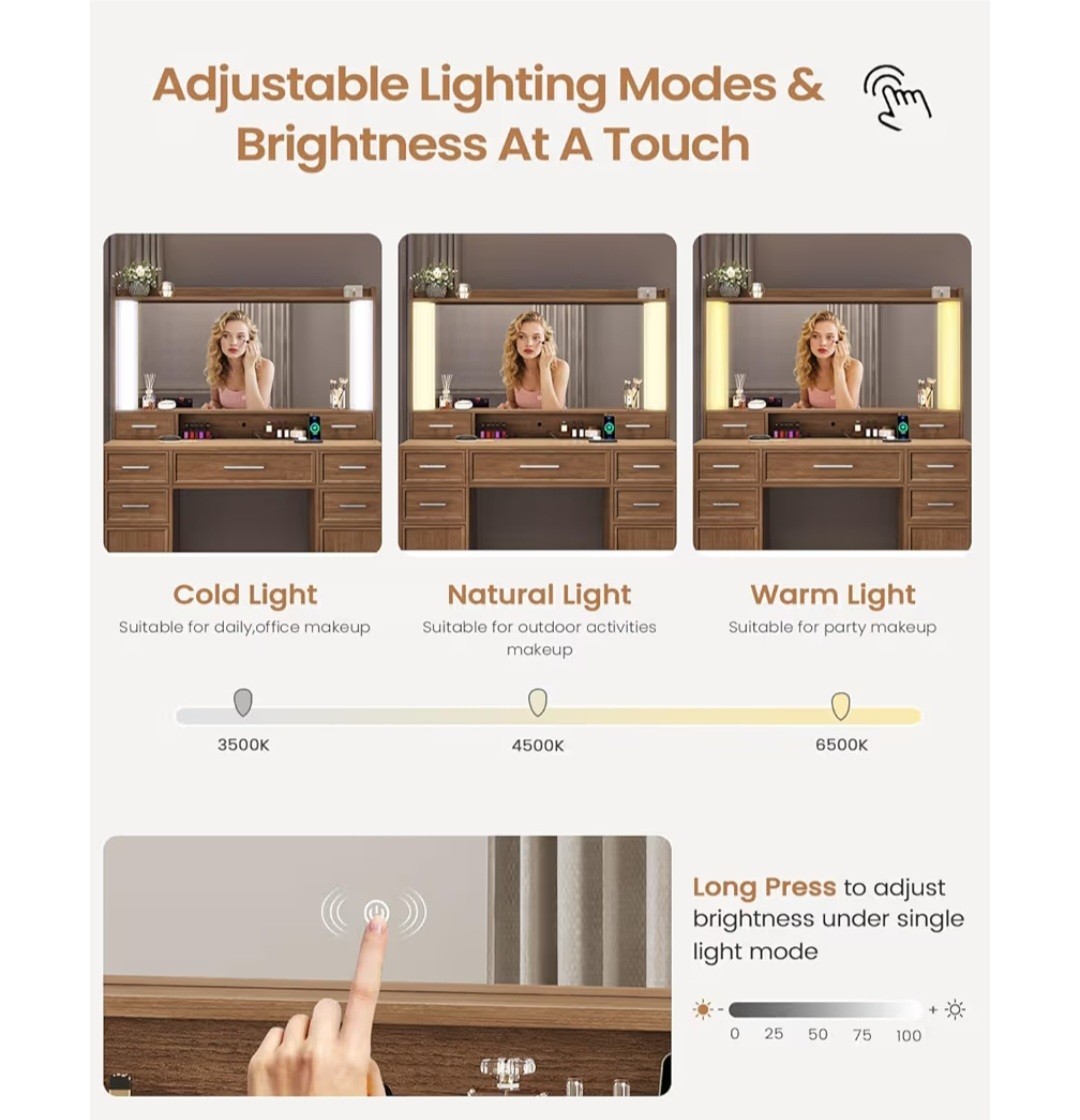 Desk with Mirror and Lights, Makeup Vanity Desk with Lights, Large Mirror.