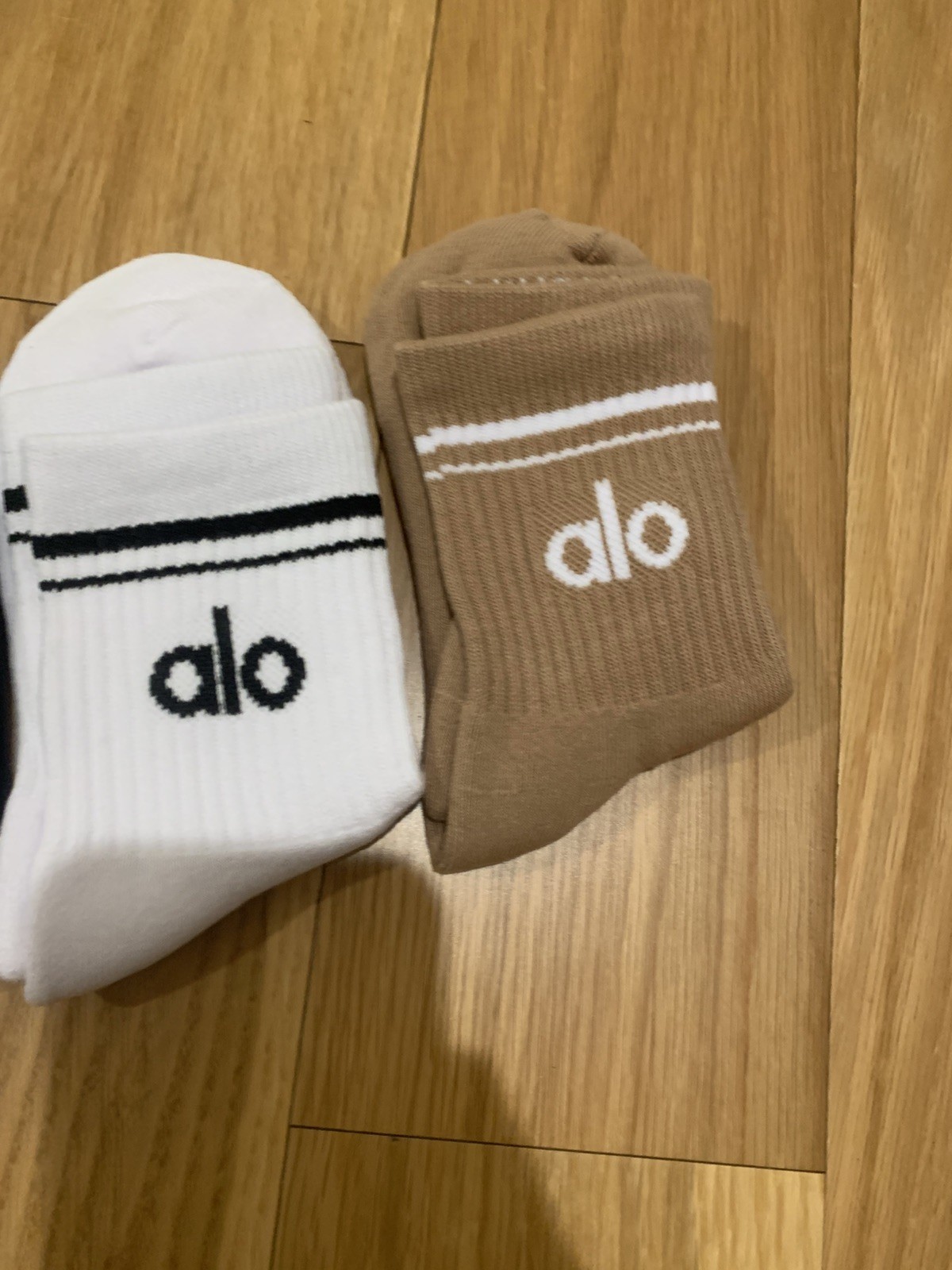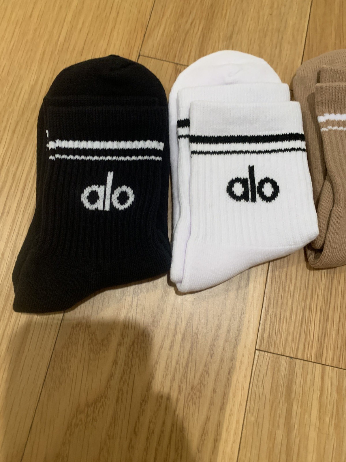 как выглядит Alo Unisex Half-Crew Throwback Socks 3 Pack White tan Black фото