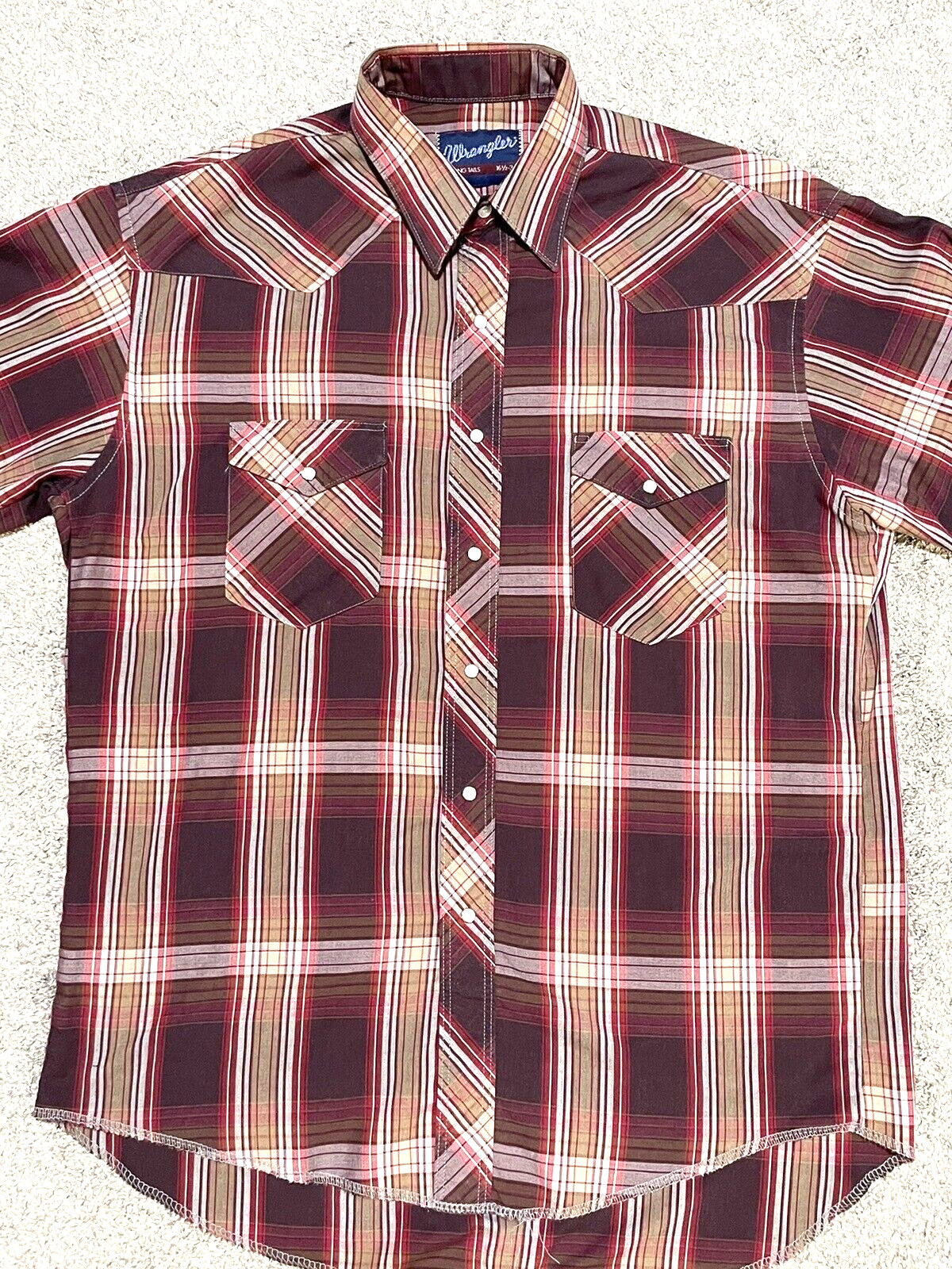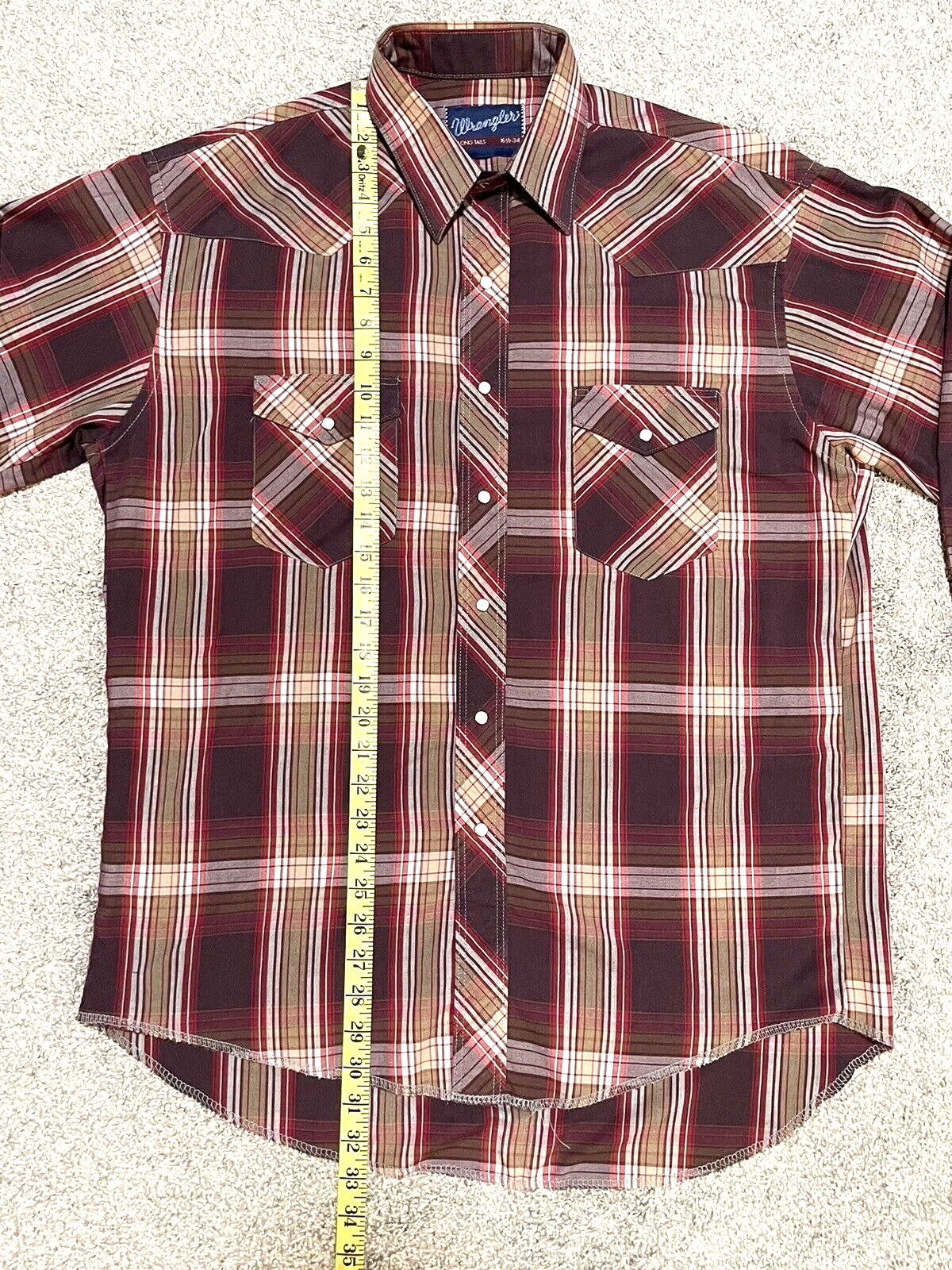 Vintage 90's Wrangler Red Plaid Pearl Snap Western Shirt X-Long Tails Large 16.5