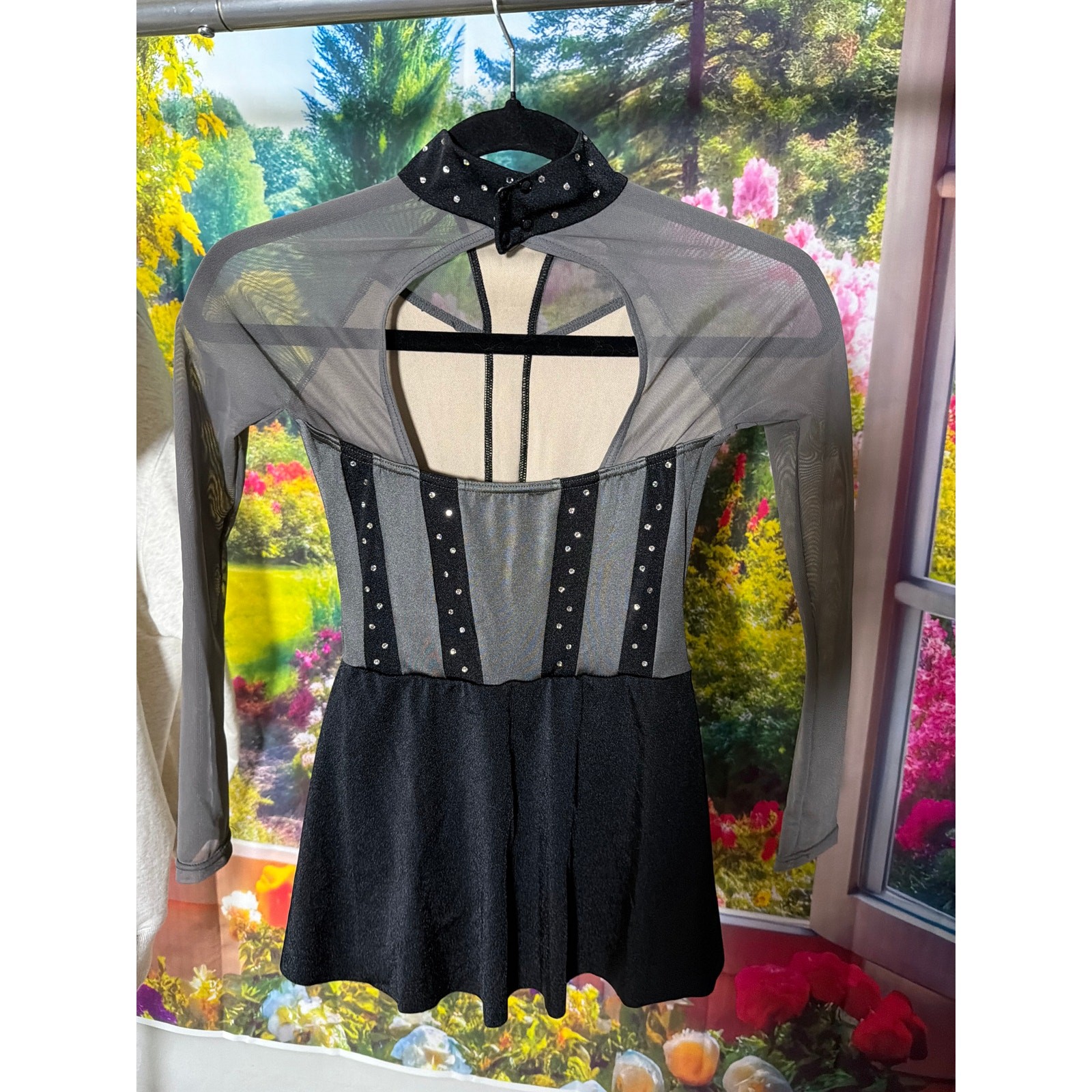 как выглядит 0158 Weissman Black Sheer Mesh Rhinestone Dance Dress Child 4 фото