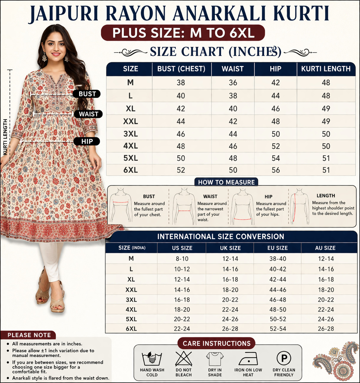 Jaipuri Rayon Anarkali Kurti Plus Size M-6XL Women Printed Ethnic
