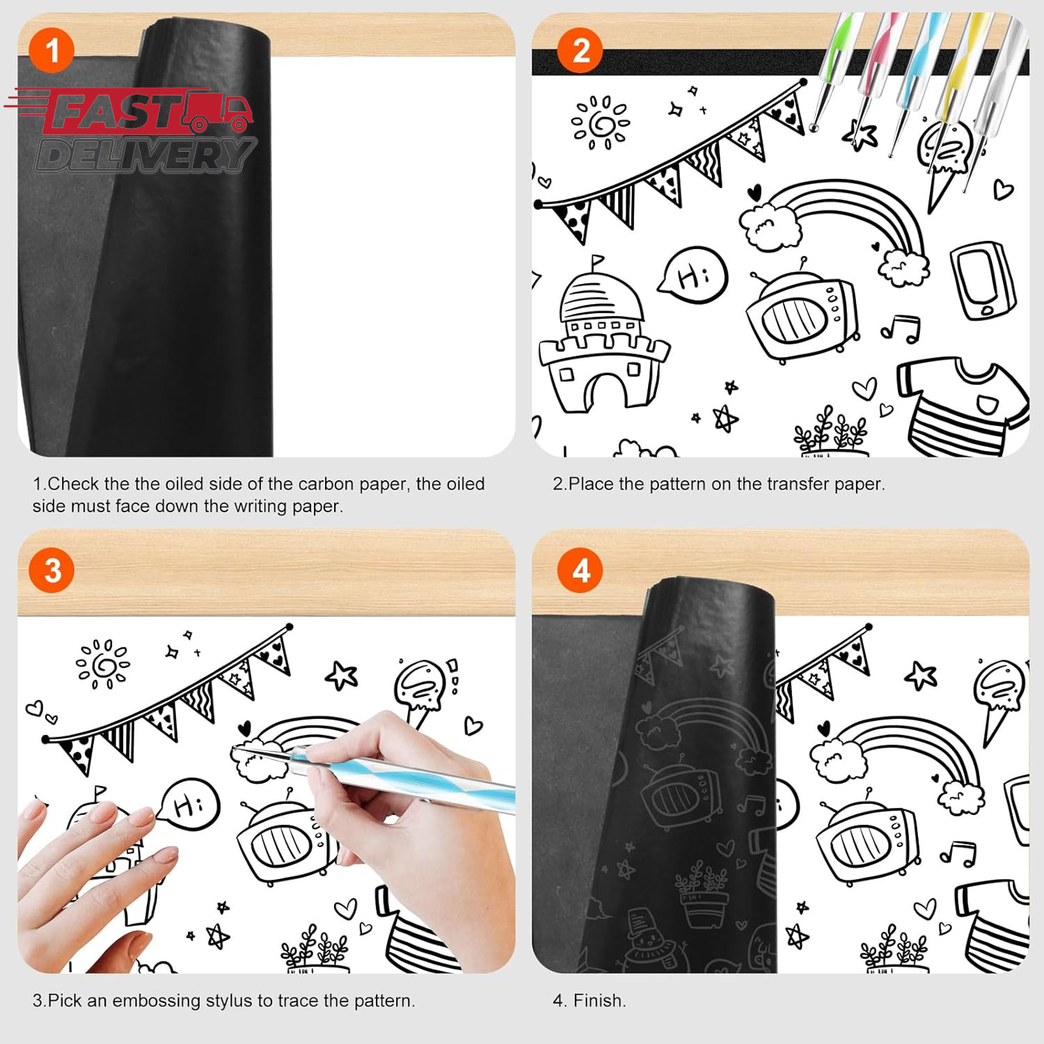 как выглядит 200 Sheets Carbon Paper Black Graphite Paper Transfer Tracing Paper and 5 Pieces фото