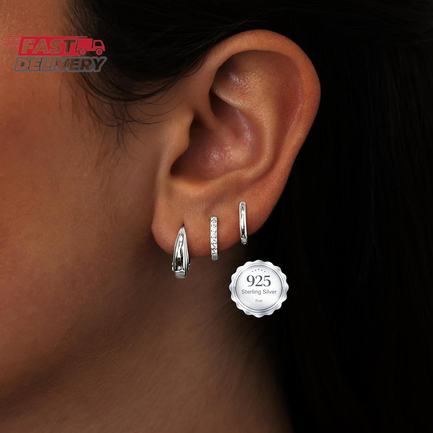 как выглядит Small Sterling Silver Huggie Hoop Earrings Set for Women, Hypoallergenic 14K Gol фото