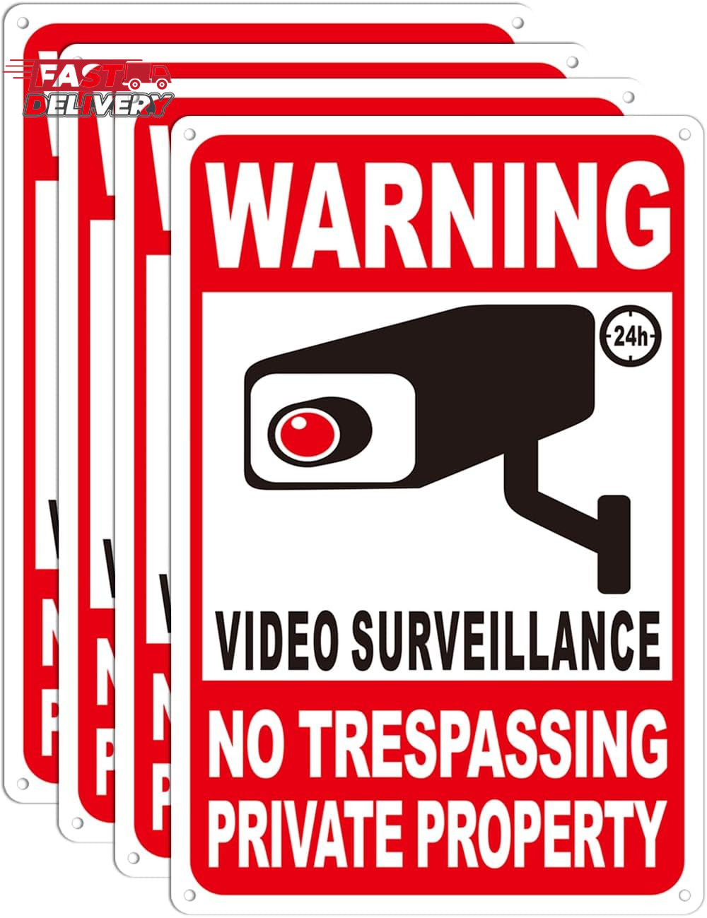 4-Pack Private Property No Trespassing Signs, 12X8 Outdoor Video Surveillance