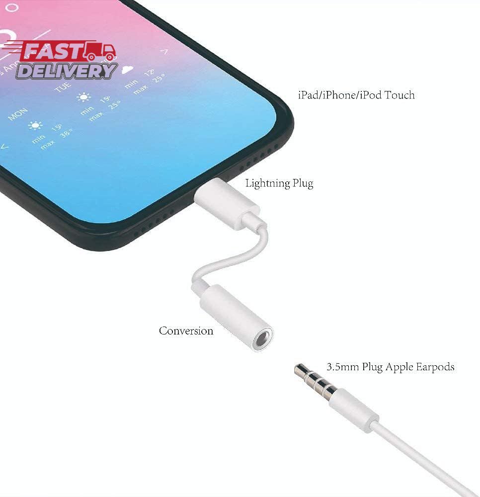 2 Pack Apple Mfi Certified Lightning to 3.5 Mm Headphone Jack Adapter, for Iph