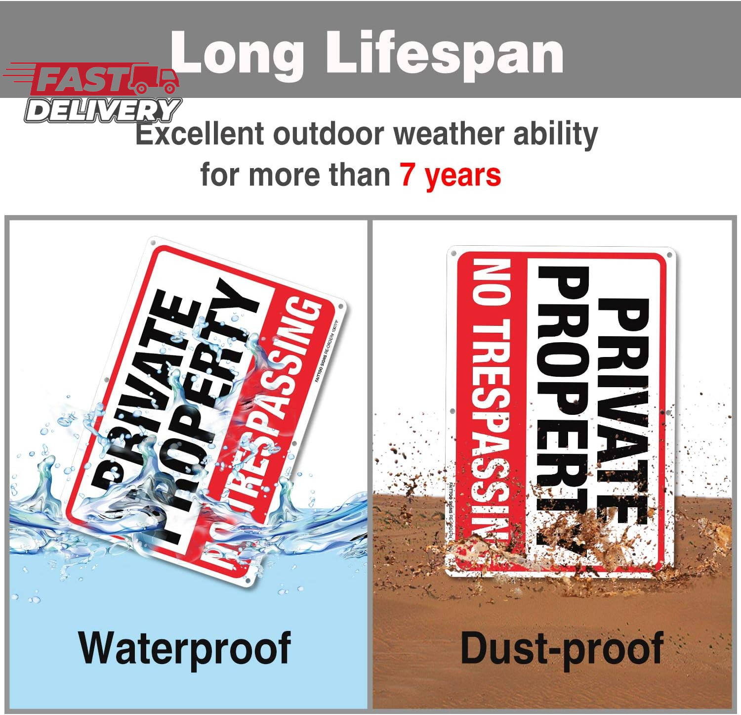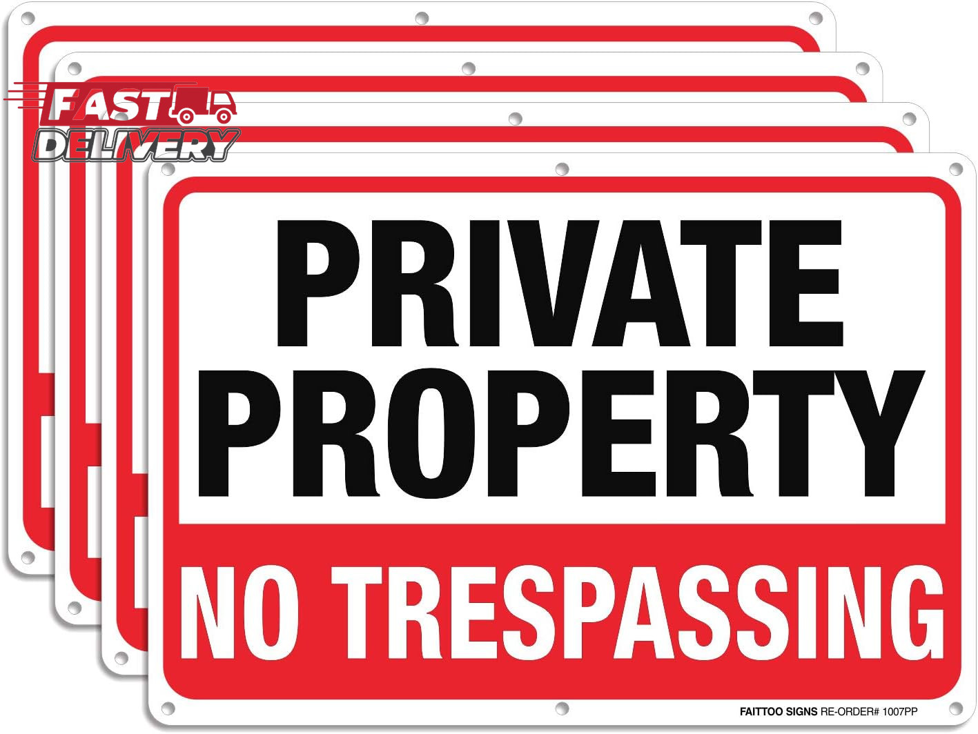 Private Property No Trespassing Metal Sign 4 Pack , 10 X 7 Inches Rust Free .04