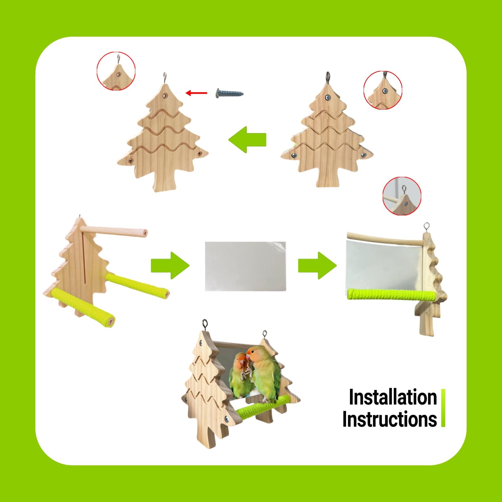 как выглядит Bird Toys, Wooden Swing with Mirror and Perches for Cage, Natural Wood фото