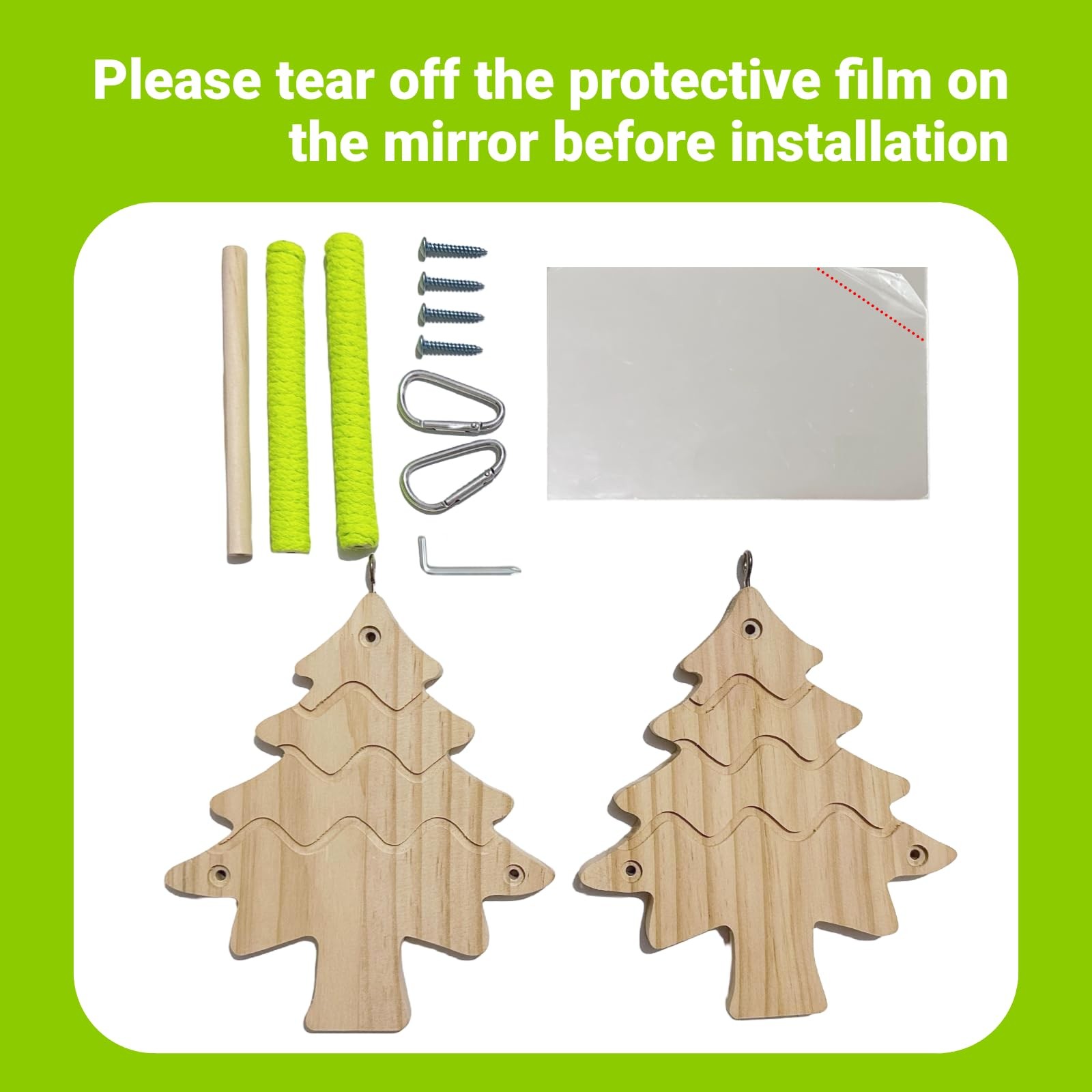 Bird Toys, Wooden Swing with Mirror and Perches for Cage, Natural Wood
