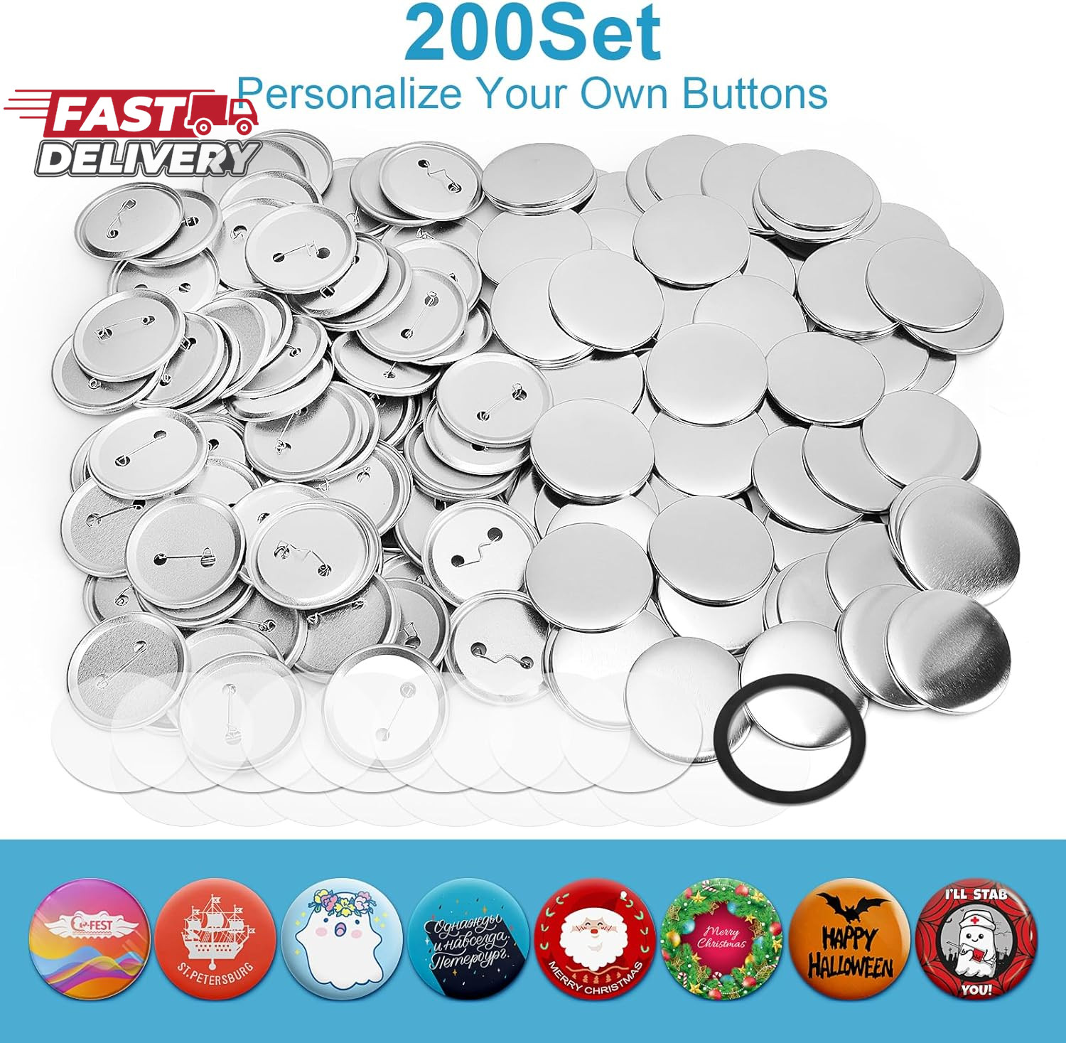 200 Set 2.28 Inch Button Maker Supplies, 58Mm Approx. 2.25 in Metal Blank Button
