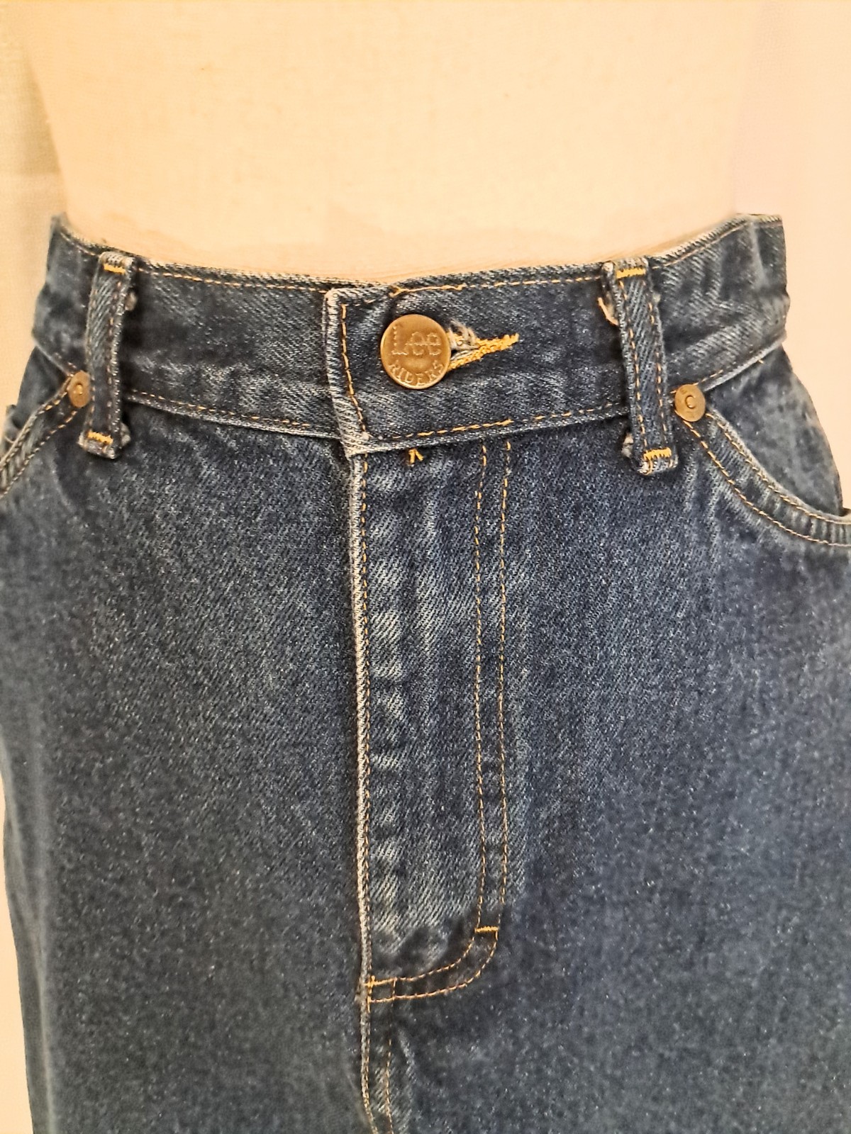 Vintage Lee Dark Wash Denim Skirt High Waist Classic Knee Length Staple Sz S
