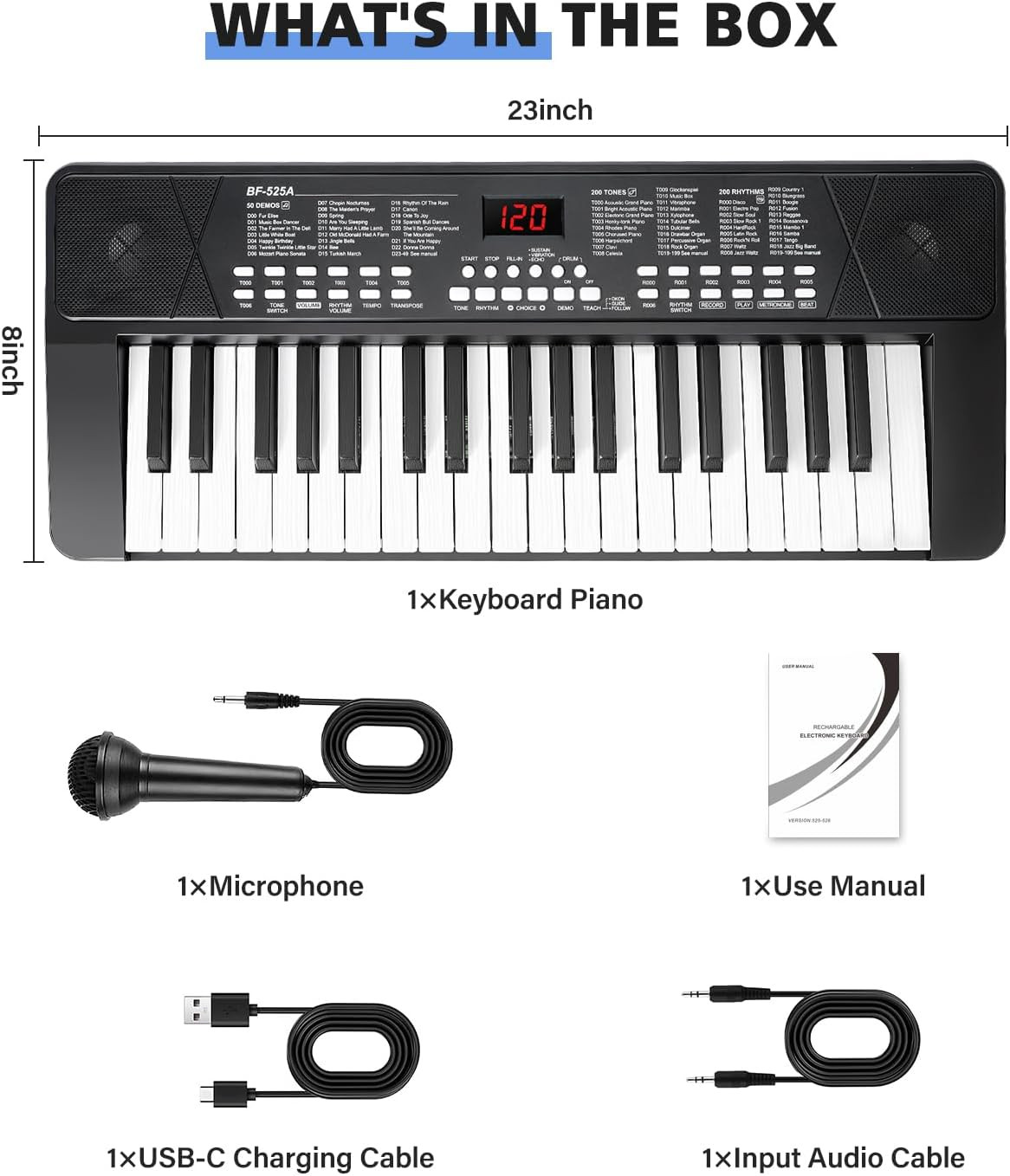 37 Keys Piano Keyboard for Beginners -1200Mah Rechargeable Electronic Musical In