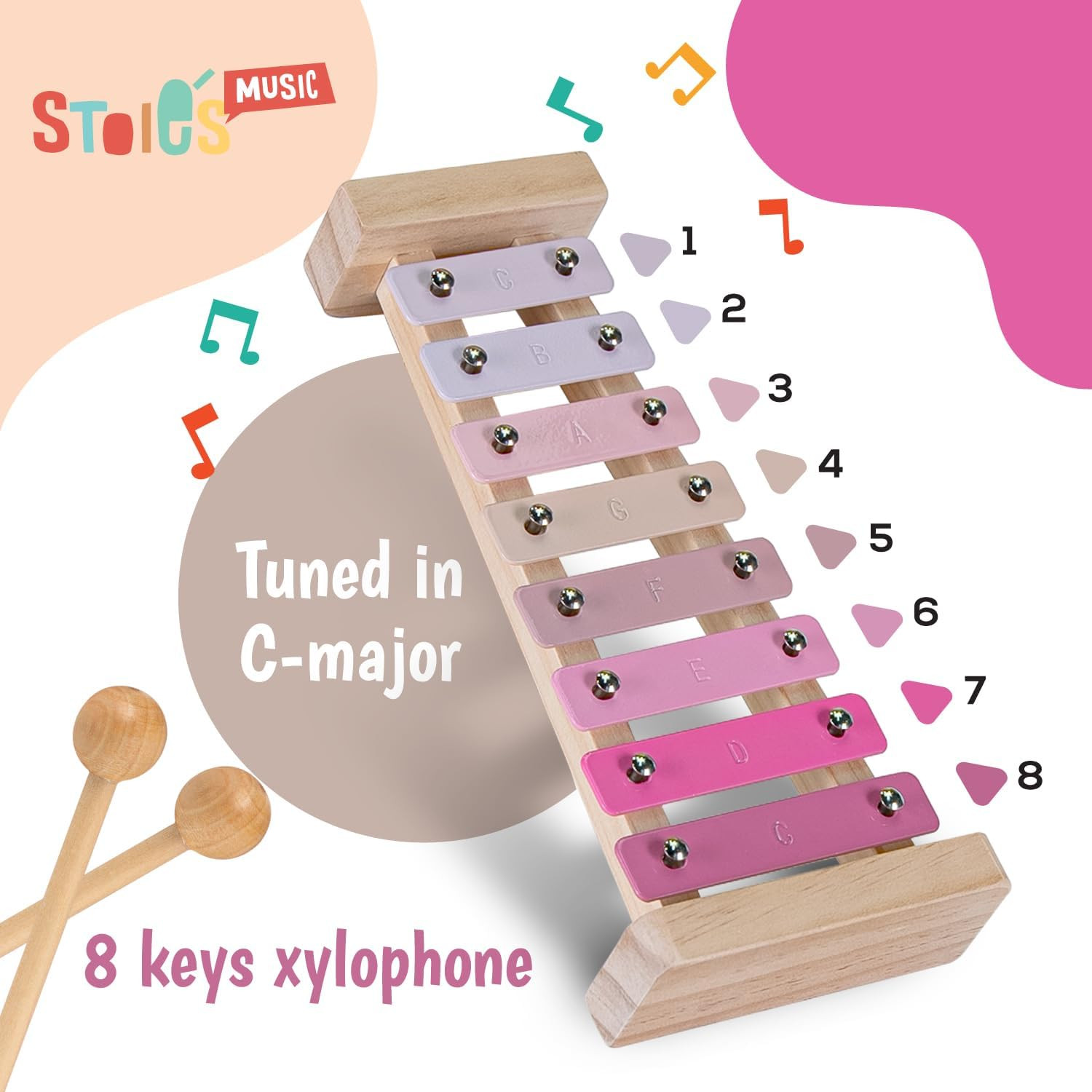 Pink Sensation Xylophone for Kids and Toddlers 3-5, Tuned C-Key Wooden 8 Notes X