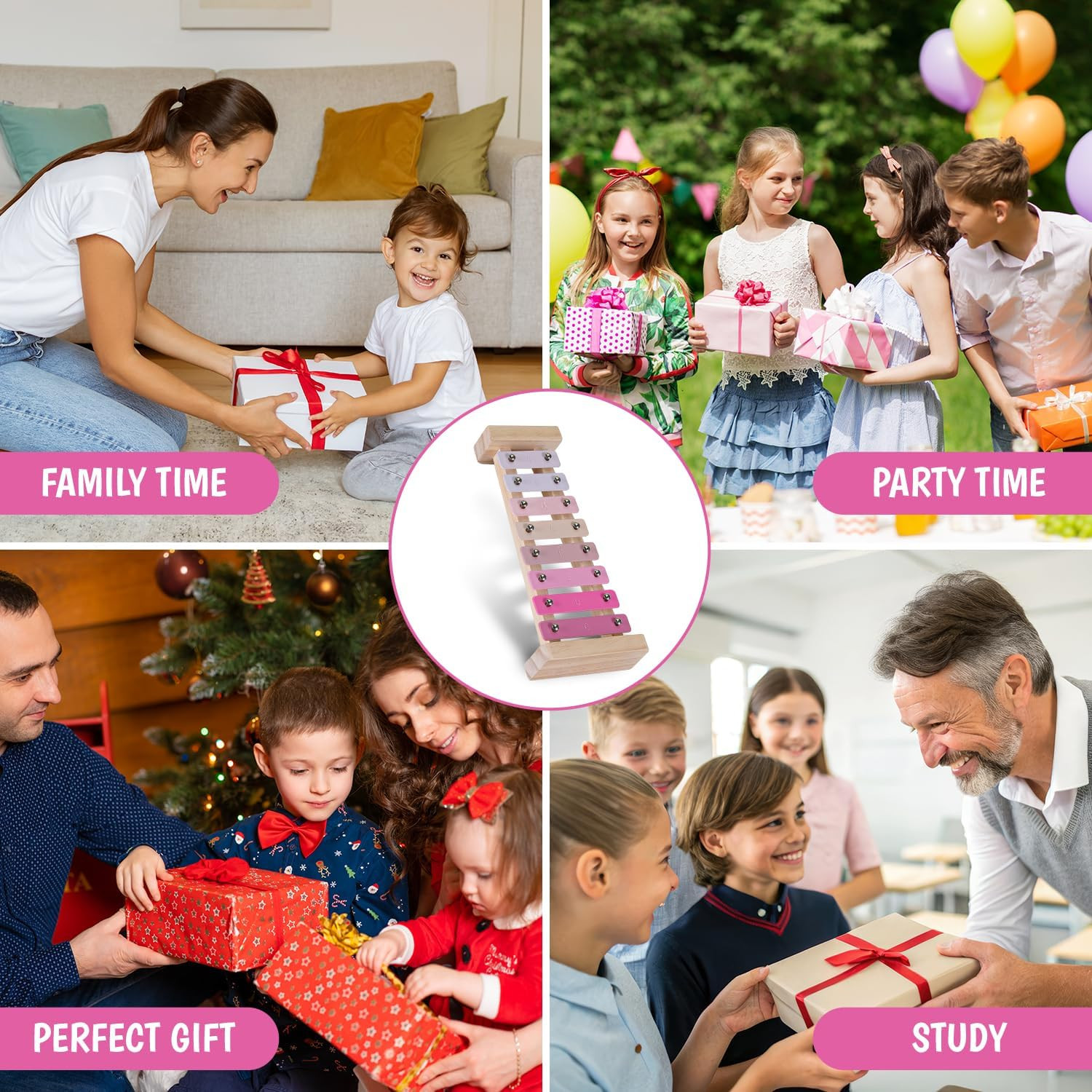 как выглядит Pink Sensation Xylophone for Kids and Toddlers 3-5, Tuned C-Key Wooden 8 Notes X фото